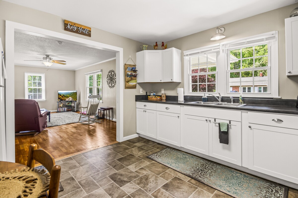 Come enjoy this magnificent view in Saluda! Relax in the swings or sit on the porch and enjoy the peacefulness. The fire pit under the stars is so Saludacrous! Our cozy cottage is just steps from Judds Peak and 2 miles from downtown, where there is always food and fun! The Gorge Zipline is located in our quaint little town and the Green River has hiking, tubing, kayaking, white water rafting, rock climbing! The towns of Hendersonville, Flat Rock and Asheville are just minutes away.