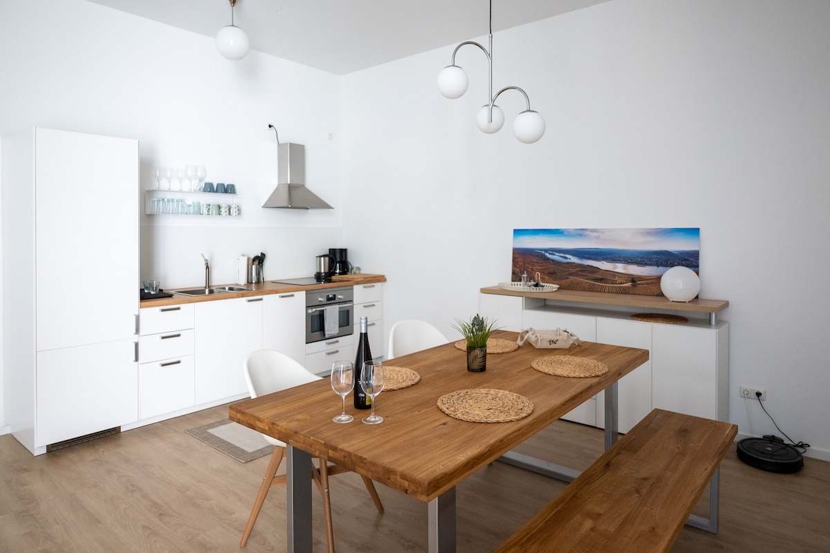 Az újonnan felújított, nagyon elegáns loftlakásunk központi helyen, egy gyönyörű, régi borászatban található Rüdesheim szívében. Minden látnivaló itt van a sarkon. Csupán néhány perc alatt elérheted a fő látványosságokat, például a felvonóállomást, a híres „Drosselễ” -t, vagy megkezdheted a túrát a Niederwald-emlékműig. Még ha központi helyen is van, a lakás privát szférát és nyugalmat biztosít. Mindössze egy pihentető szállásra van szükséged Rüdesheimben.