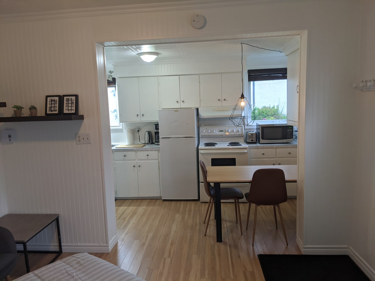Loftlakás a Gaspé City Centre-ben. Gyalogosan elérhető minden szolgáltatás közelében: éttermek és bárok, bevásárlóközpont, szupermarket, főiskola, múzeum, séta az öböl mentén stb. A konyhában minden megtalálható, ami a főzéshez szükséges: főzőedények, edények és evőeszközök. A Wi-Fi gyors, és a parkolás is benne van. Tökéletes pároknak vagy átmeneti munkásoknak.