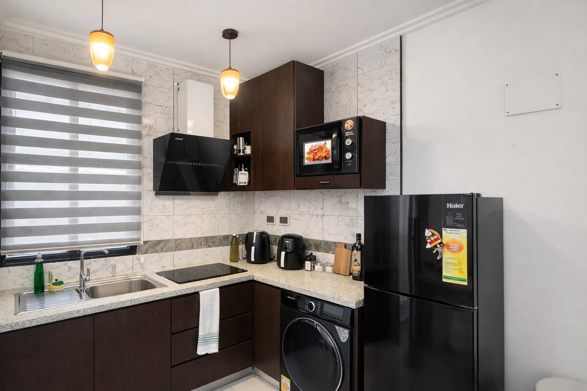 Szálljon meg stílusosan a Buk3-ban, egy luxus két hálószobás lakásban a gazdag Roman Ridge környéken – mindössze 10 percre a repülőtértől és 12 percre az Accra Mall bevásárlóközponttól. Élvezd a tágas nappalit, a felszerelt konyhát, a 2,5 fürdőszobát és az erkélyt. A lakásban éjjel-nappal biztonsági szolgálat, nagy sebességű internet és tartalék áramellátás biztosítja a teljes kényelmet. Kényelmes helyen, egy főút közelében és egy szupermarketkel szemben, kávézókkal, éttermekkel és bankautomatákkal a közelben. Tökéletes üzleti vagy szabadidős utazásokhoz Accra központjában.