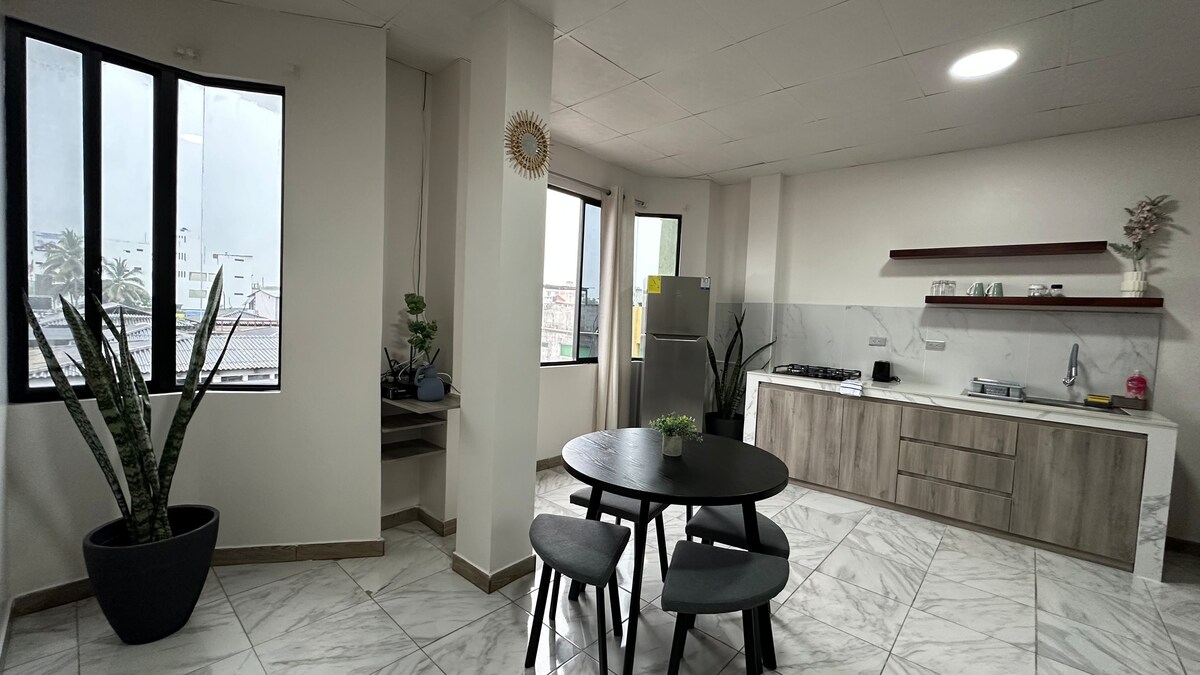 A sziget egyik legmagasabb épületének teraszán található, ahonnan egész nap csodálatos kilátás nyílik. Nagyon könnyű megtalálni, Baltra főutcáján. Éttermek, üzletek és egy Banco Pichincha ATM veszi körül az utca túloldalán. 4 háztömbnyire a Terminal Terrestre-től és 3 háztömbnyire a Mercado Municipaltól és a buszmegállótól a vidéki területekig. Privát nyitott terasz, edzőfelszereléssel, étkezővel és konyhával, edényekkel. Tökéletes találkozókhoz.