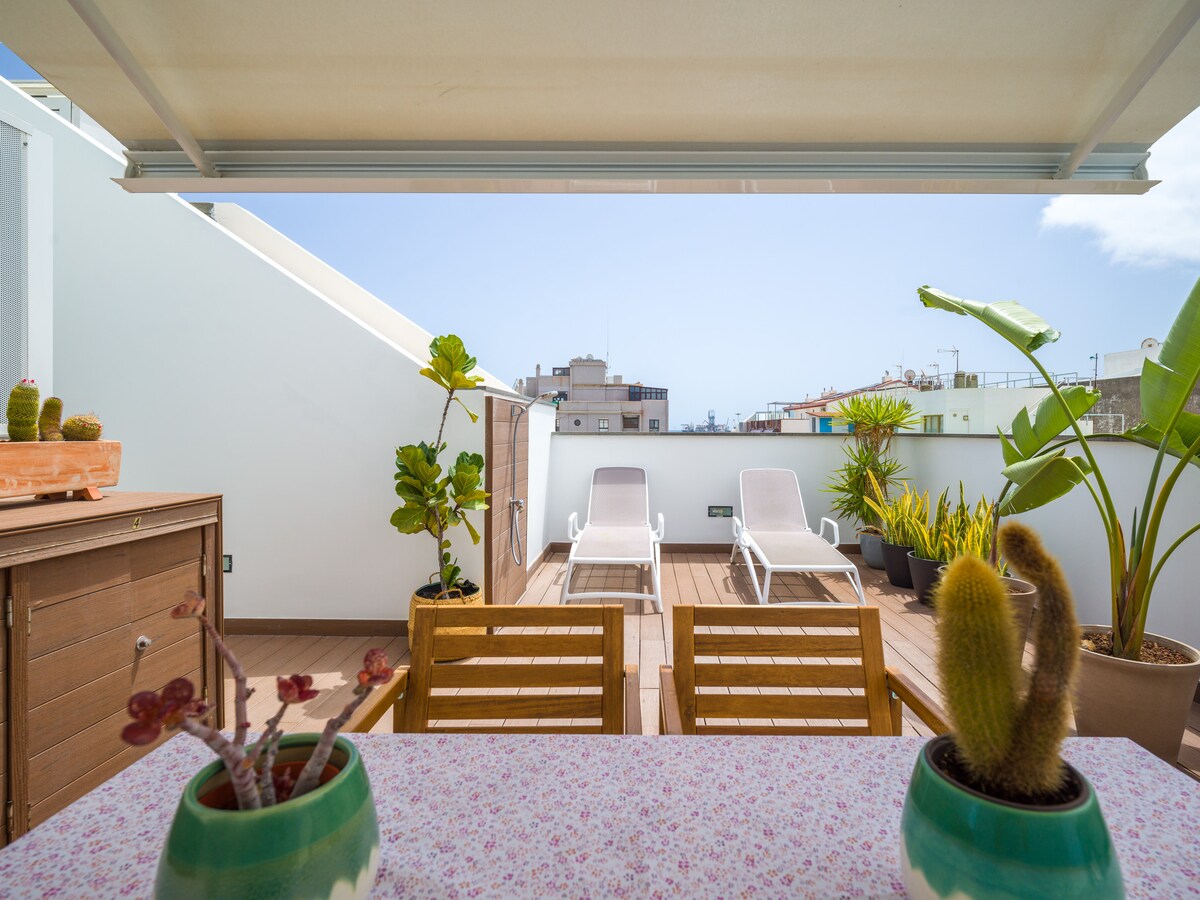 Welcome to TopSun, your penthouse with a spacious terrace and city views! This charming penthouse of 70 m² (including 30 m² of terrace) is located on the 6th floor and offers you a unique experience with modern and functional decor. Its large terrace will ensure the best moments of relaxation and sunbathing. Equipped with all modern amenities, including a Smart TV and air conditioning, 'TopSun' is the perfect place for a peaceful getaway in Las Canteras and Santa Catalina.