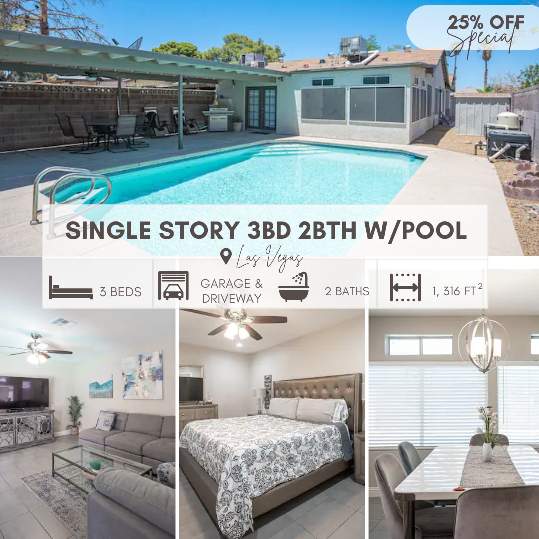 Hangulatos 3 hálószobás otthon medencével – 9 mérföldre a LV Strip-től!