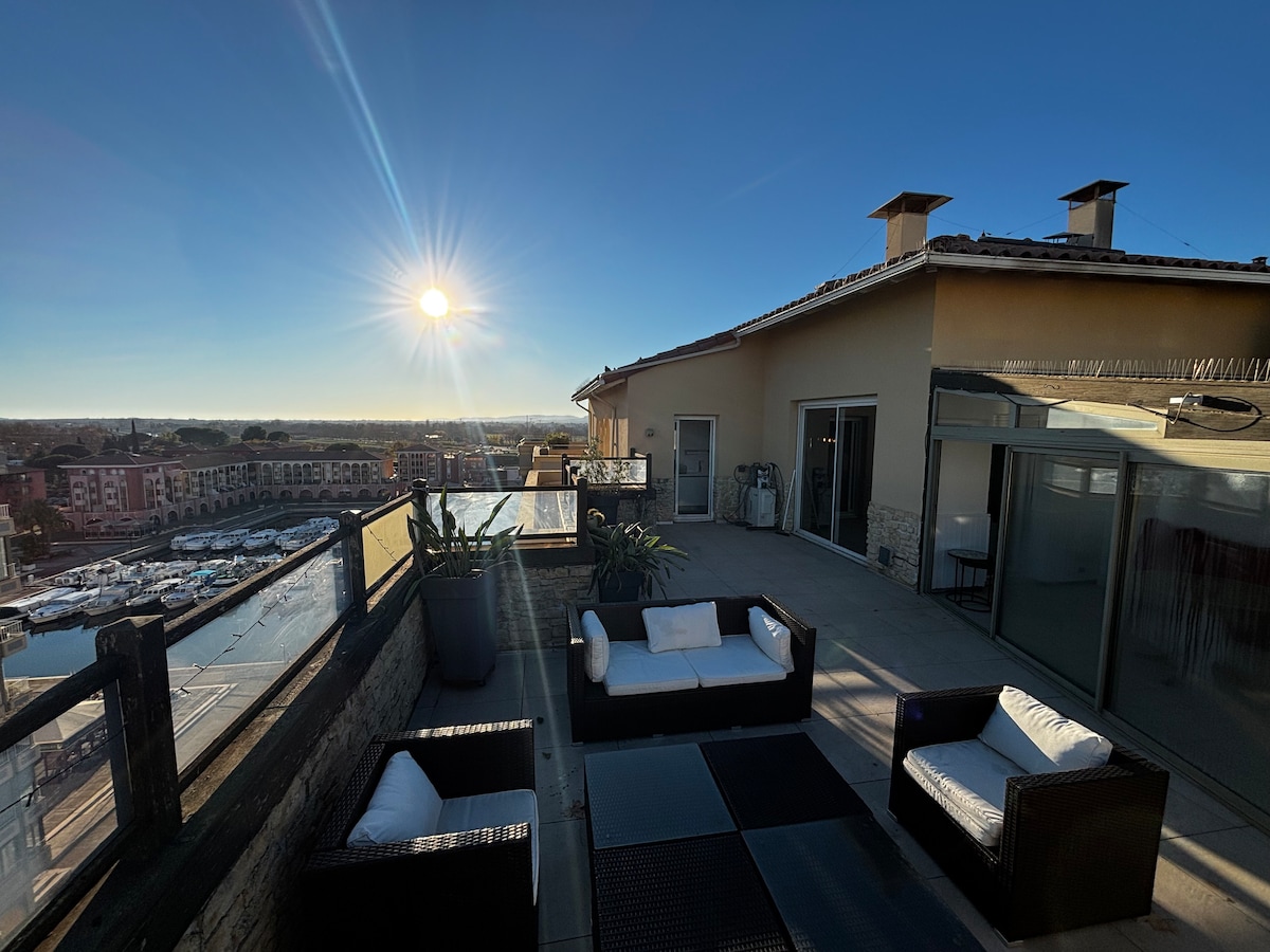 Pihenj ebben a csendes és stílusos otthonban T2 35m² (2 fő) gyönyörű terasszal 17m² kilátással a kikötőre, csendes és biztonságos lakóhelyen, teljesen felújított és légkondicionált, minden üzlet és étterem a közelben – Thalasso SPA központ a rezidencián (térítés ellenében) - 8 perc autóútra a strandoktól és Montpellier-től – saját parkoló – lift - nemdohányzó lakás - nemdohányzó lakás – nem dohányzó – háziállatok nélkül – lepedők, konyharuhák és törölközők - 2 TV nappali és hálószoba - külön WC