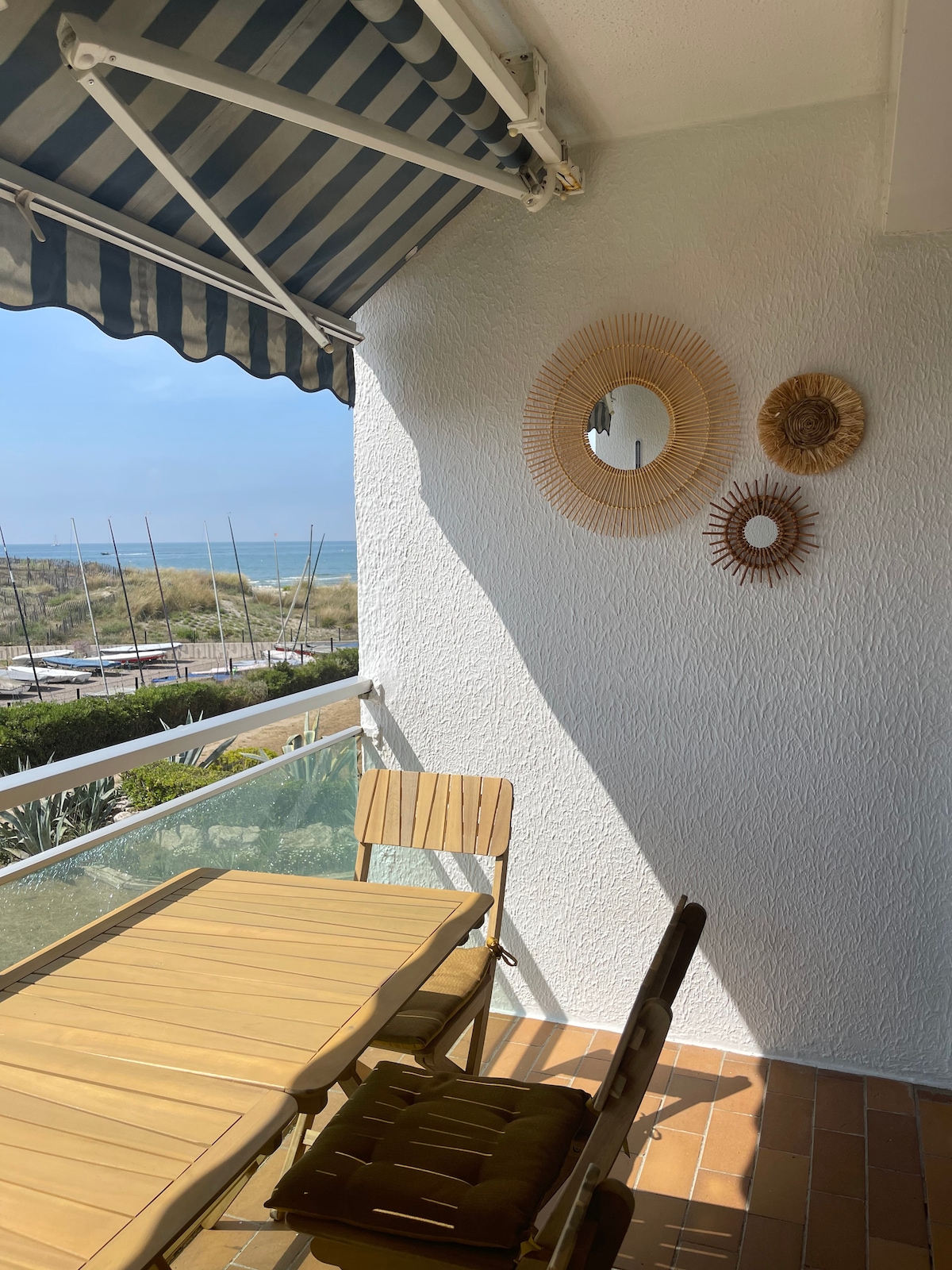 Örömmel üdvözlünk a Residence Le Kursaal in Carnon Ouest, F3 calm and bright, 1st line in Carnon beach, Sea view with terasz, direct access to the beach on foot, you just have to get off the apartment, no street in the residence, the apartment is on the 1st floor without elevator. Saját parkolóhelyed lesz sípolással a szálláshelyre való belépéshez. A szálláshely biztonságos, nagyon jól karbantartott és csendes.