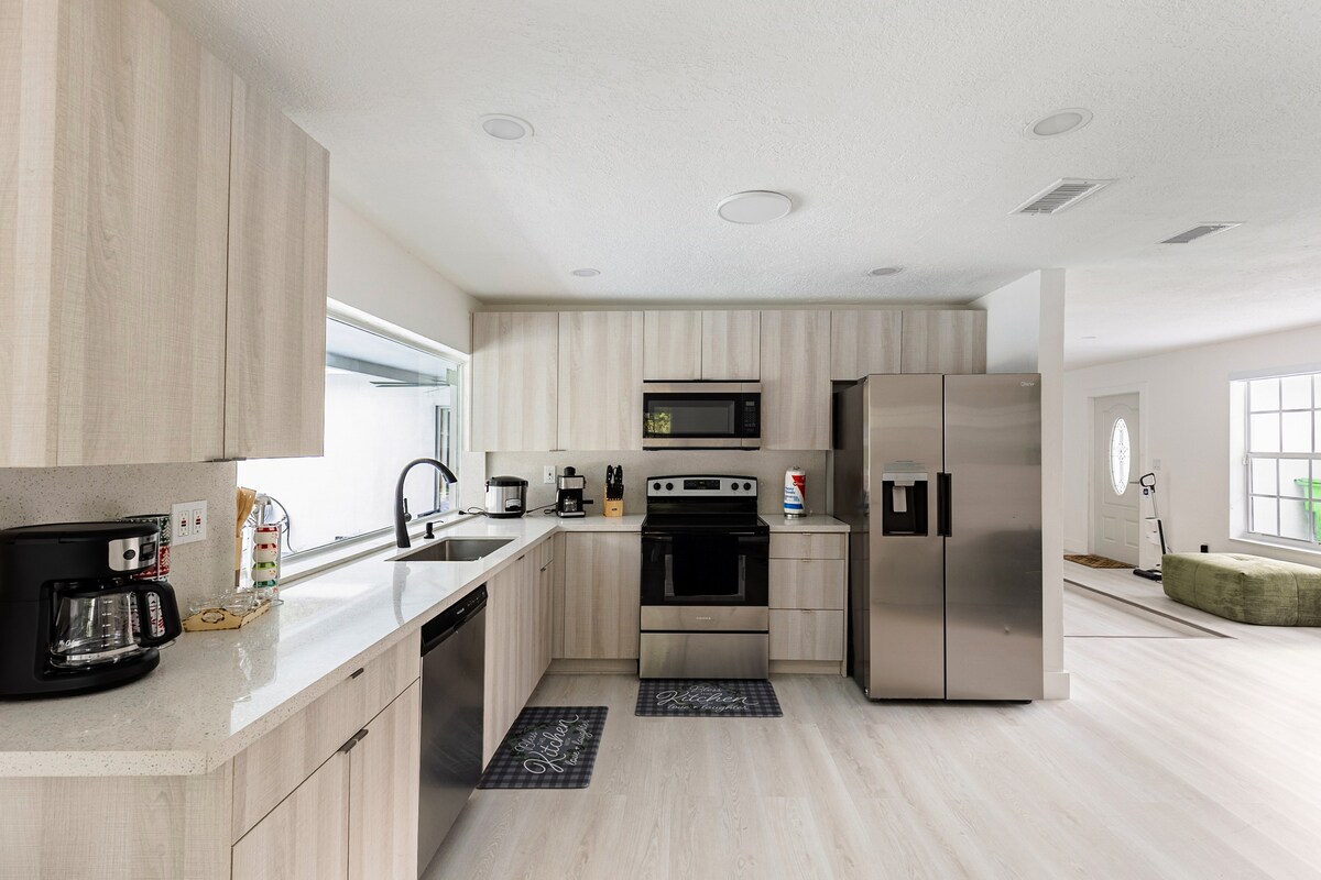 💰Nincs nikkel és diming – AirBnb és takarítási díjak az éjszakai áron! 🛌🏽KING Westin Heavenly ágyak; tökéletes kényelem és alvás A ✅Chef's Kitchen teljesen fel van szerelve, készen áll az ínyenc főzésre 🏖️Strandszékek, törölközők és sportesernyők állnak rendelkezésedre. 🐶Alacsony háziállatdíj; teljesen elkerített hátsó udvar. 💻 Nagy sebességű és megbízható internet és külön munkaterület. 👙5 perc a strandtól és 10 perc Las Olastól/a belvárostól 📺Nagy Roku Smart TV mindkét hálószobában és nappaliban 😊Nonstop helyi házigazdai támogatás!
