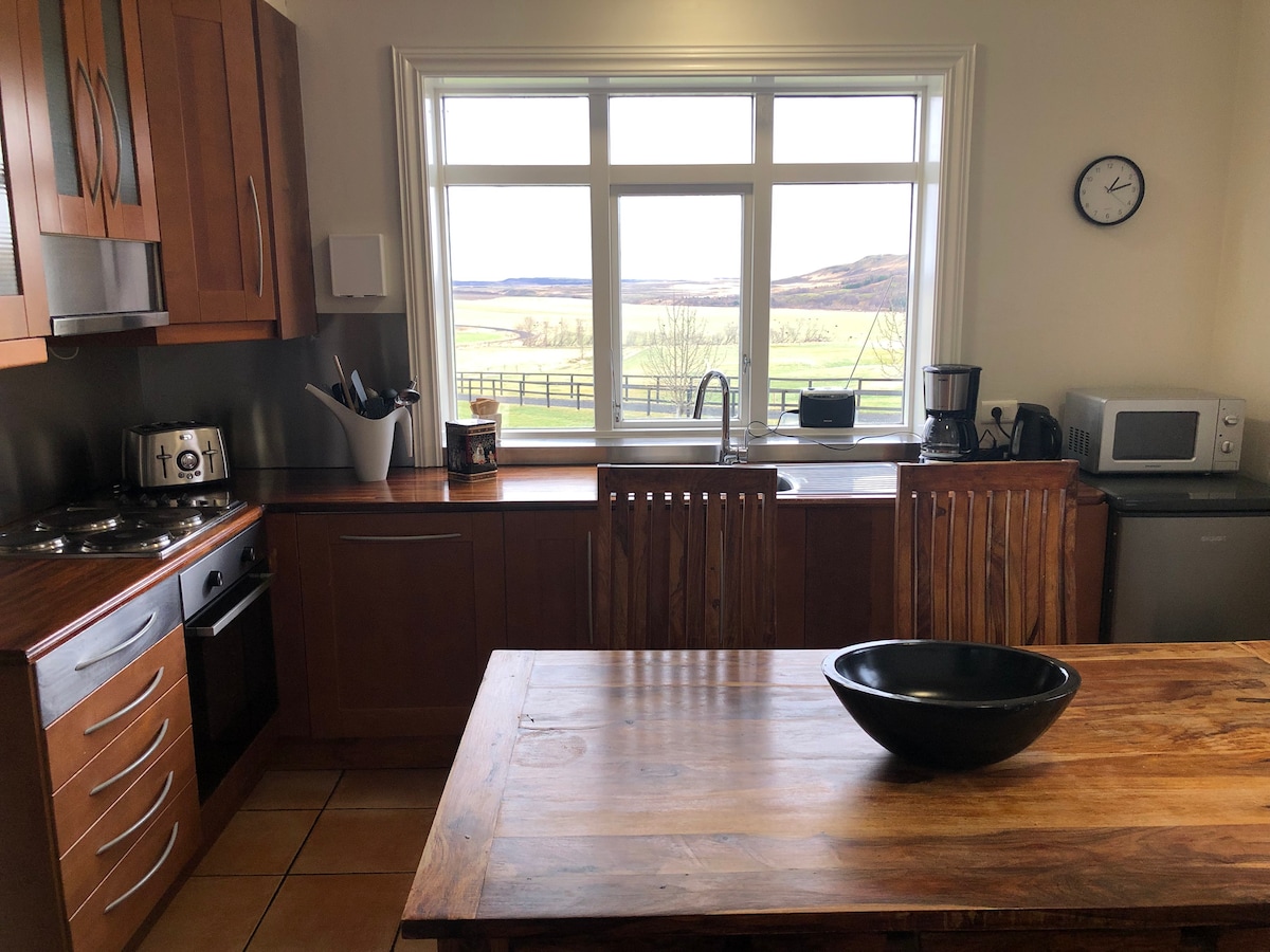 Az Urriðafoss Apartments csodálatos természetben található, a vízesés, az Urriðafoss vízesés előtt, amely a délnyugat-izlandi jórsá folyón található. A ház 2018-ban épült, és hatalmas ablakokkal rendelkezik, hogy a vendégeink élvezhessék a kilátást. A házat nyáron gyönyörű vadvilág, télen pedig északi fények veszik körül. Az Urriðafoss Apartments teljesen felszerelt wifivel, tévével, mosógéppel és szárítógéppel, kávéfőzővel, hűtővel, minden szükséges konyhai eszközzel és pezsgőfürdővel rendelkezik.