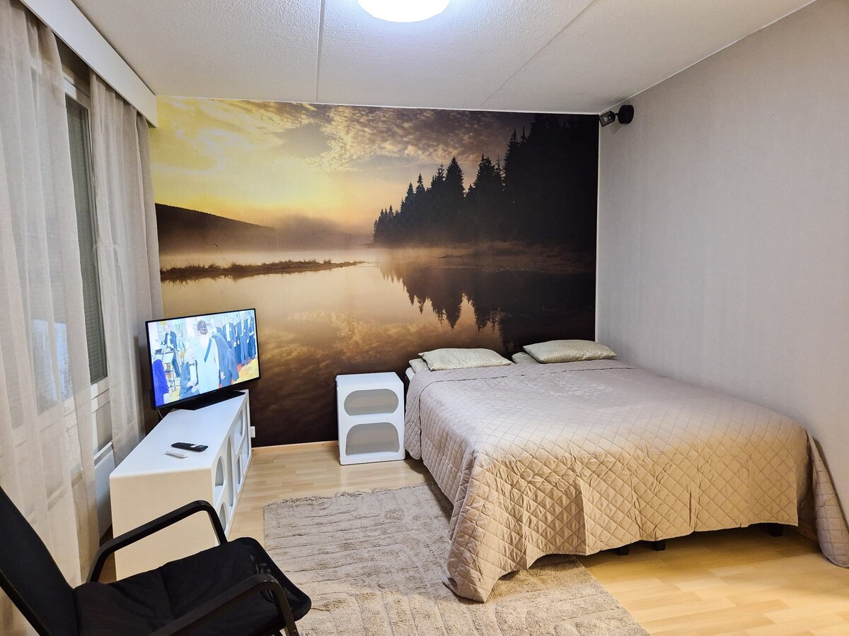 • Kétszobás lakás. • Mázas terasz. • Wifi és Netflix. • Szabadtéri tevékenységek a közelben. • Ingyenes parkolás. Nagyszerű összeköttetések a városközponttal. A legközelebbi buszmegálló mindössze 200 méterre található. 500 méteren belül két élelmiszerbolt, egy gyógyszertár és egy pizzéria található. A Seppä bevásárlóközpont 2,7 kilométerre található. A Kangaslampi tevékenységpark 300 méterre található. A Kangasvuori ösvény és a Huhtasuo Disc Golf Park 600 méterre található. A Huhtasuo sportpálya és a „Huhtahalli” focipálya 1 km-re található.