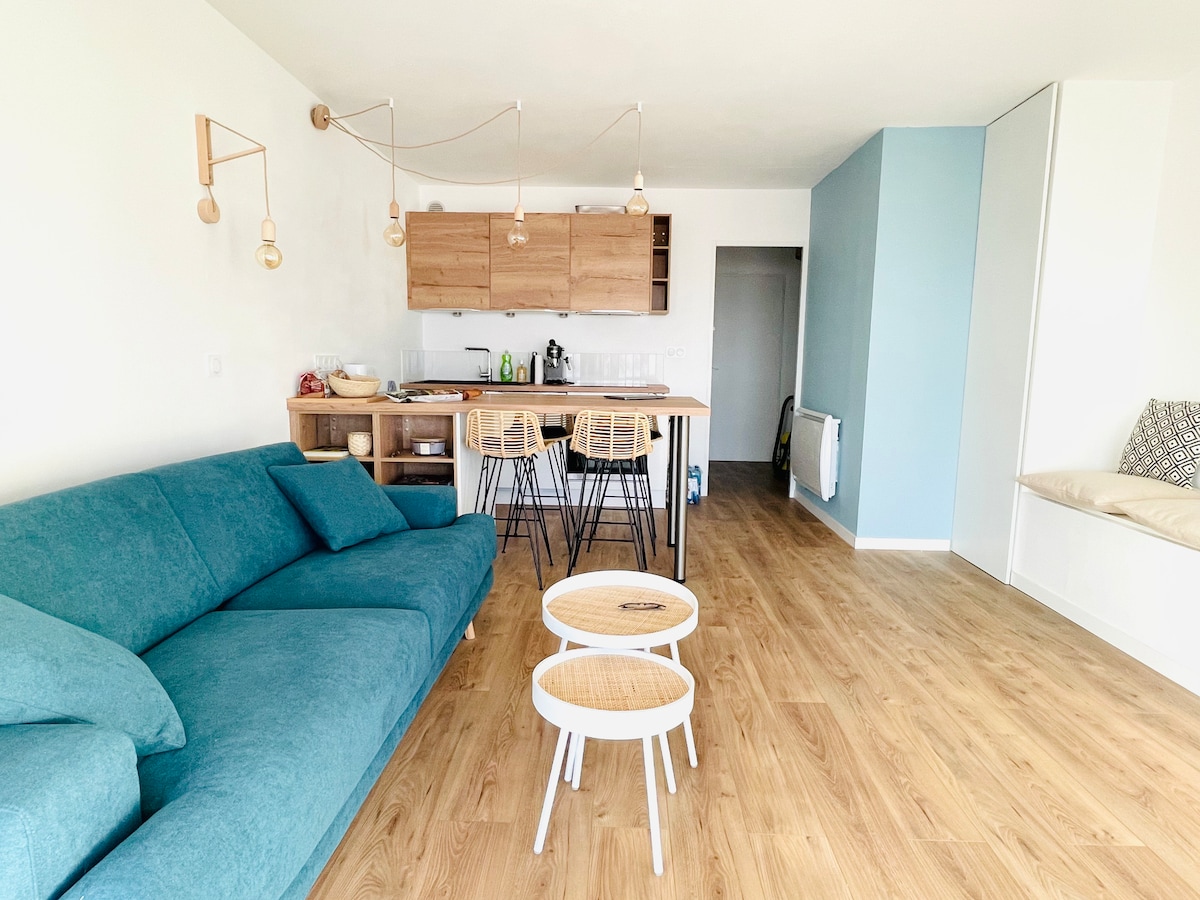 Bérbe adjuk ezt a gyönyörű, nemrég felújított, 31 $ -es lakást, amely külön hálószobával rendelkezik gyermekek számára. Kivételes kilátása, a La Baule Pornichet töltésére néző elhelyezkedése, 10 perc sétára a vasútállomástól , elegáns, ipari stílusú dekoráció, biztonságos közösségi parkolás, valamint a strandhoz és a kaszinóhoz való közvetlen közelsége. Nagy, síkképernyős intelligens TV és wifi. Dulce Gusto kávéfőző és szűrők. Rengeteg vagyontárgyat a következő nyaralásod során! Nehéz nem elcsábítani...