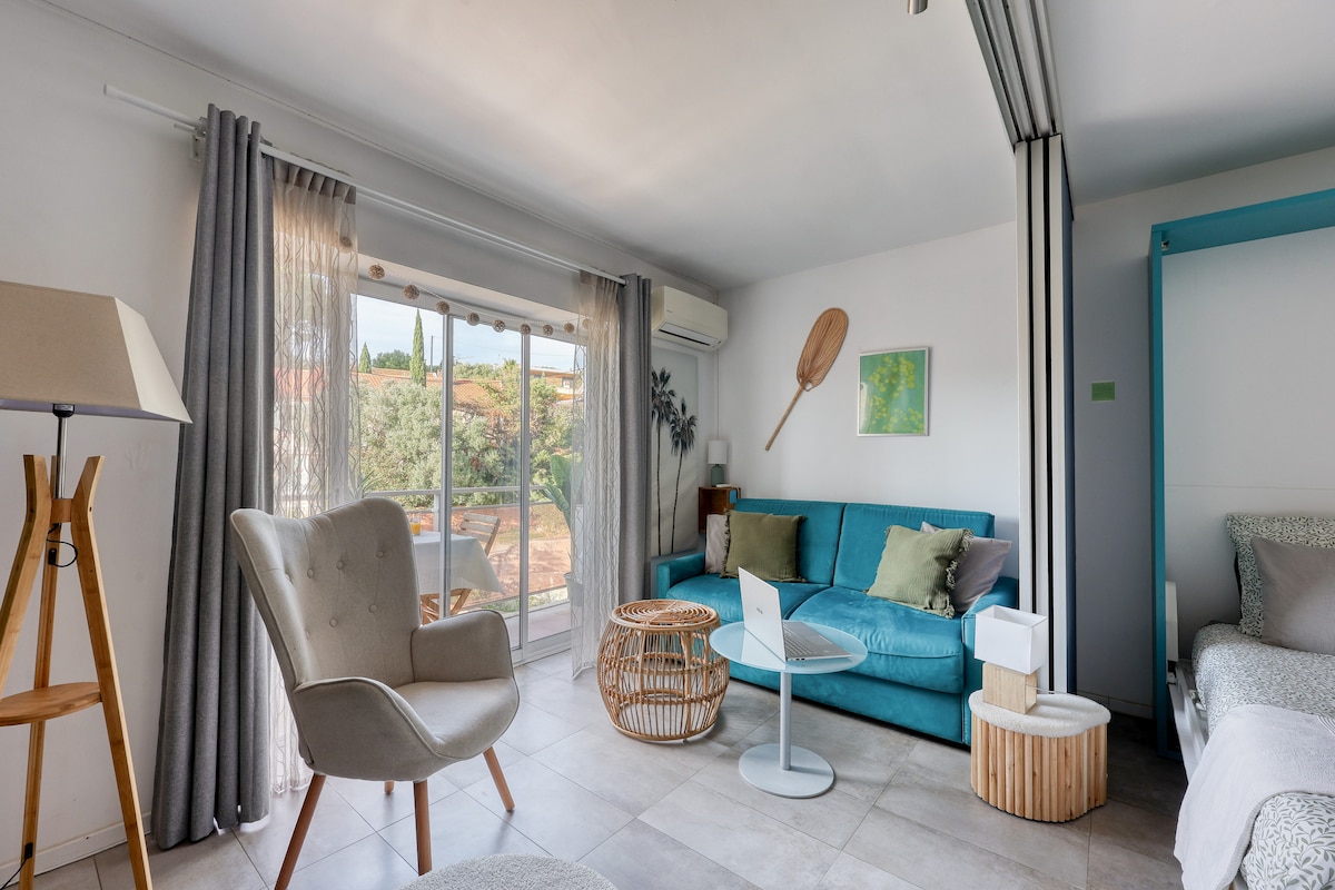 Charmant T2 tout confort à 7 min de la mer, idéal pour profiter de la nature et du calme. Découvrez Cassis, Le Castellet et la magnifique baie environnante. Accès facile à l’autoroute vers Marseille, Bandol et Sanary. Logement mitoyen sous notre habitation, parfait pour un séjour relaxant et serein.Nous habitons à l’étage supérieur et le logement est mitoyen, tout en garantissant la tranquillité et le respect de chacun.