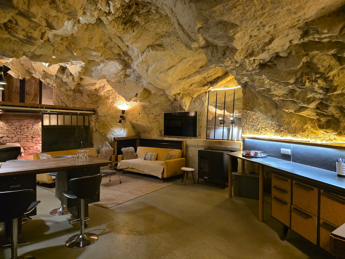 Une escapade unique et romantique au coeur d' Amboise ,sur les bords de Loire ,un espace atypique et authentique (creusé dans la roche au 16 ème siécle ) à la décoration design et à l' equipement moderne. Dans un esprit loft sur plusieurs niveaux : La salle de bain et sa BALNEO/JACUZZI pour un maximum de détente à 2 . Le salon équipé d' une TV connectée 65 pouces et barre de son performante. L 'espace nuit et son lit design pour une nuit confortable et enfin le coin repas .