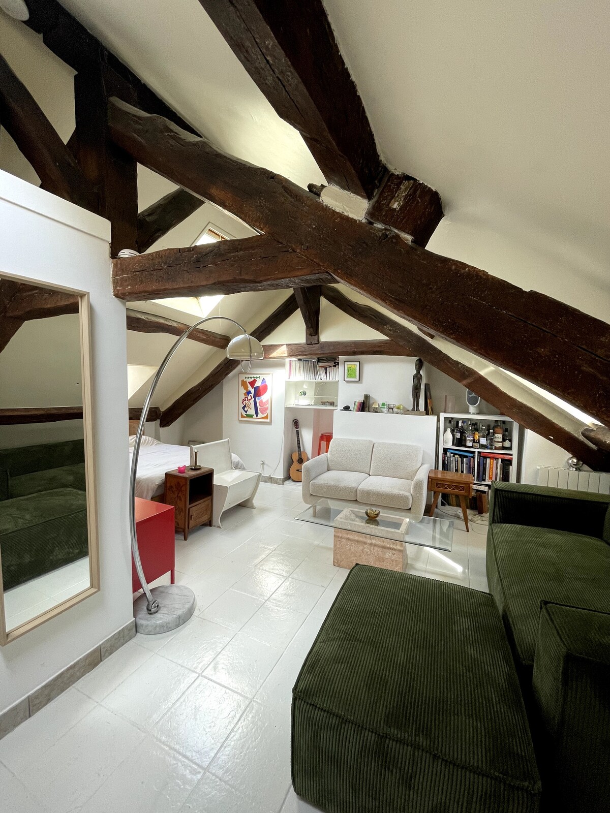 Hangulatos és meleg lakás egy 16. századi épületben csempékkel és szabadon álló gerendákkal; a történelmi negyedben vagy, két percre a Szajnától és a Notre Dame-tól. Nagyszerű néhány szeretőknek! Ellentétes kilátás nyílik Párizs háztetőire és a mocsárban tett séták utáni nyugalomra. Minden kényelmi szolgáltatáshoz közel; metró stb. Mobilitási szerződés legalább 30 éjszakára szóló bérbeadásra,