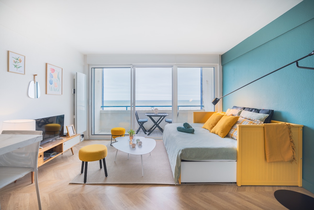 Reggelizz, olvass, és szemlélje a tengert 🌊 az Opal Coast-on található, önálló bejutást kínáló, hangulatos, erkélyes lakás nappalijából. ✅ Fontos információk 🌅180°-os kilátás a tengerre 🪟 Nagy franciaablak és 6 m²-es erkély 🚗Privát garázs (1 hely) 📶Wifi + csatlakoztatott TV ✨Felújított, 54 m²-es lakás, hangulatos és világos, kifinomult dekorációval. 🏖️Minden gyalogosan elérhető: strand, üzletek, éttermek, kaszinó… és sétálj, hogy megfigyeld a fókákat (az árapálytól függően). 👶Bababarát: összecsukható kiságy + etetőszék a helyszínen