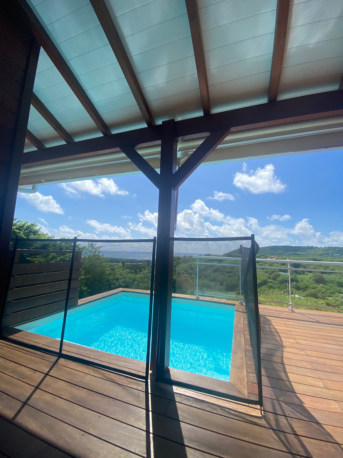 SEJOUR GLYCERIA Joli havre de paix en bas de villa indépendant avec sa piscine privative et sa vue dégagée sur la campagne avec la mer en toile de fond. Situé sur les hauteurs du Marin, vous ne serez qu'à 10 min des plus belles plages de l'île. Vous disposez également d'un terrain de pétanque et d'un panier de basket. Les boules et le ballon sont sur place! 🏀
