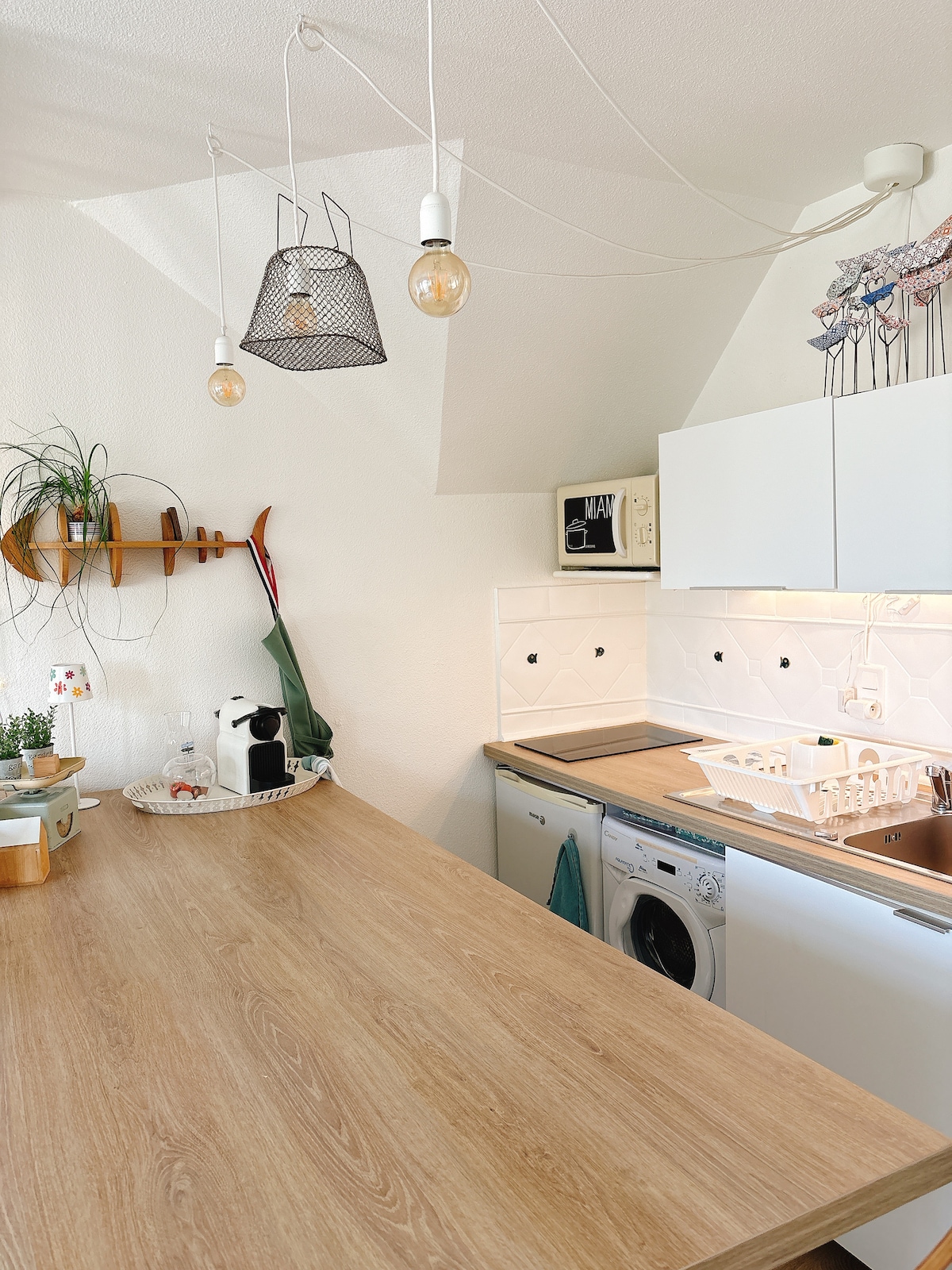 Joli T3, de 44m2, très lumineux, au premier étage d'un petit immeuble. Vue panoramique sur la plage et la place du marché. Situé en plein cœur de la vie estivale et festive de Quiberon. Discothèque, restaurants, terrasses et autres commerces au pas de la porte. 1 place de parking incluse (à 2 mn à pied du logement) !!! Juillet et Août, mois particulièrement animés, café concert et autres animations de rue peuvent avoir lieu en début de nuit ATTENTION : draps non fournis !!! Voir ci dessous !