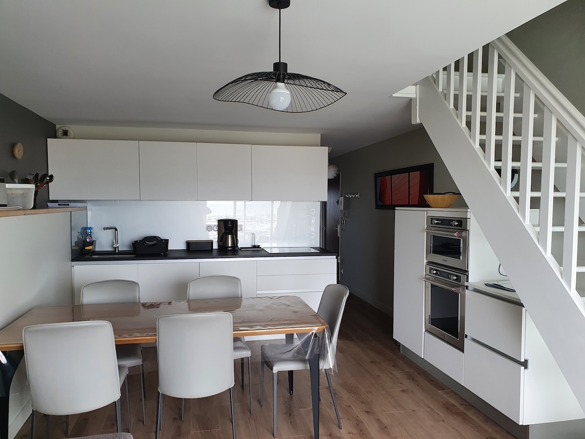 Ce beau duplex familial se compose, au rdc, d'une entrée, un séjour avec coin cuisine équipé, un balcon, une salle d'eau avec wc. A l'étage, une chambre avec salle de bain et wc. Une place de parking privée à l'extérieur. Accès piscine en été. Il se situe sur le port du Crouesty, à 5min à pied de la plage du Fogeo. Vous trouverez, à proximité: -La base nautique -La thalassothérapie -Le sentier côtier GR34 -Le golf de Rhuys Kerver -Tous commerces -Les marchés -La pointe du Petit Mont