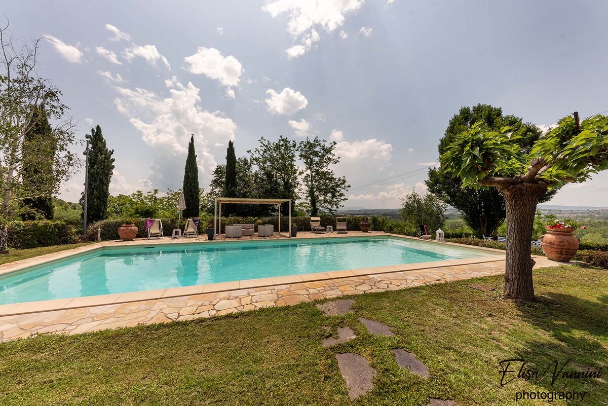 Casa Luna-Splendida, kilátással a medencére és a toszkán természetre