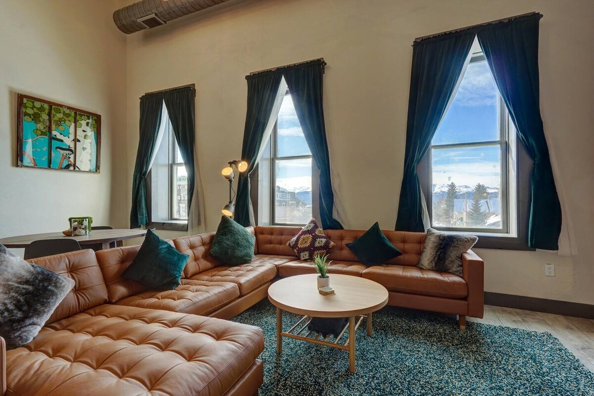 Történelmi bájt tapasztalhatsz ebben a 2 hálószobás leadville-i loftlakásban, amely 14 láb magas mennyezettel, csupasz téglafalakkal és modern kényelmi szolgáltatásokkal rendelkezik. Élvezd a világos nappalit, a jól felszerelt konyhát és az elsődleges hálószobát infravörös szaunával és erkéllyel, ahonnan kilátás nyílik a hegyekre. Sétálj el a Main Street látnivalóihoz, és fedezd fel a közeli sípályákat és túraútvonalakat. Pihenj stílusosan egy kalandos nap után. Meghirdette: @BookTraverse