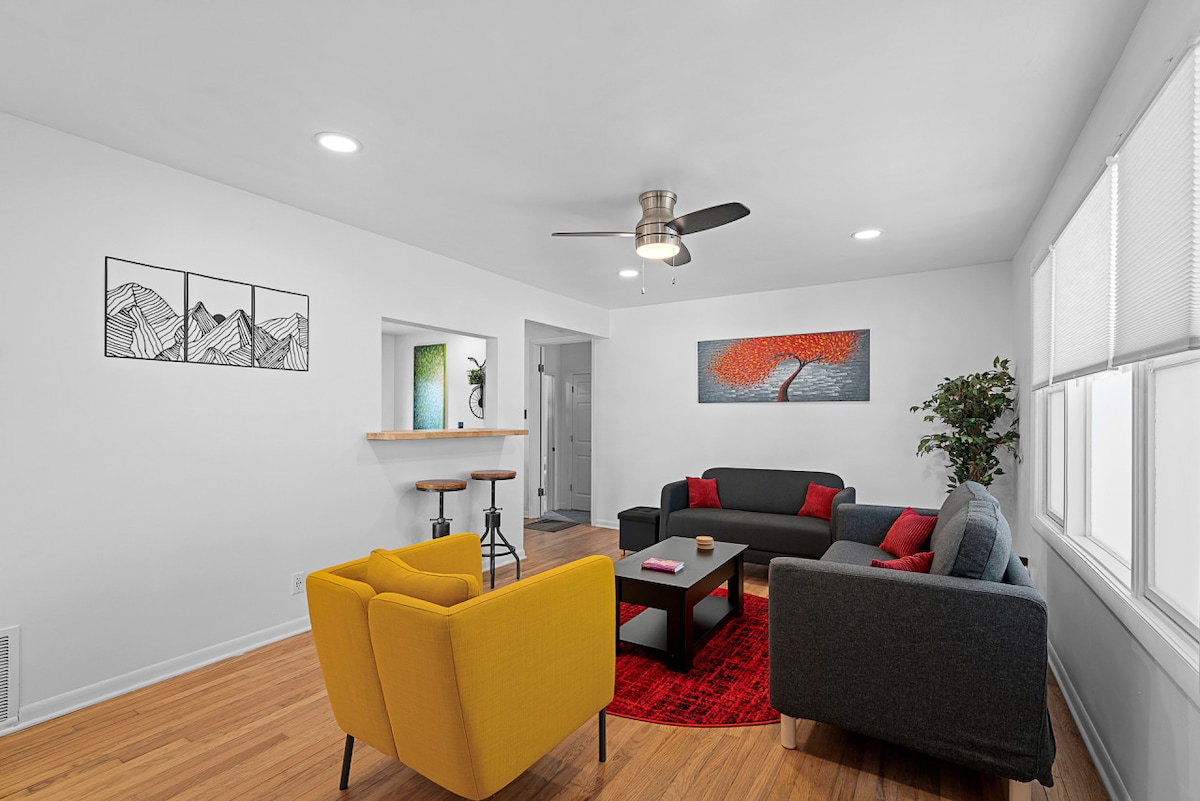 Welcome to Overland Park Retreat in the Heart of Old Town Overland Park! This charming 2-bedroom, 2-bathroom home blends modern comforts with timeless charm, offering a perfect retreat for any traveler. Enjoy the open-concept living area with stylish furnishings and natural light. The fully equipped kitchen features stainless steel appliances and granite countertops. Need to work? High-speed fiber internet is available throughout the home. Relax and stream your favorite shows on the massive TV!