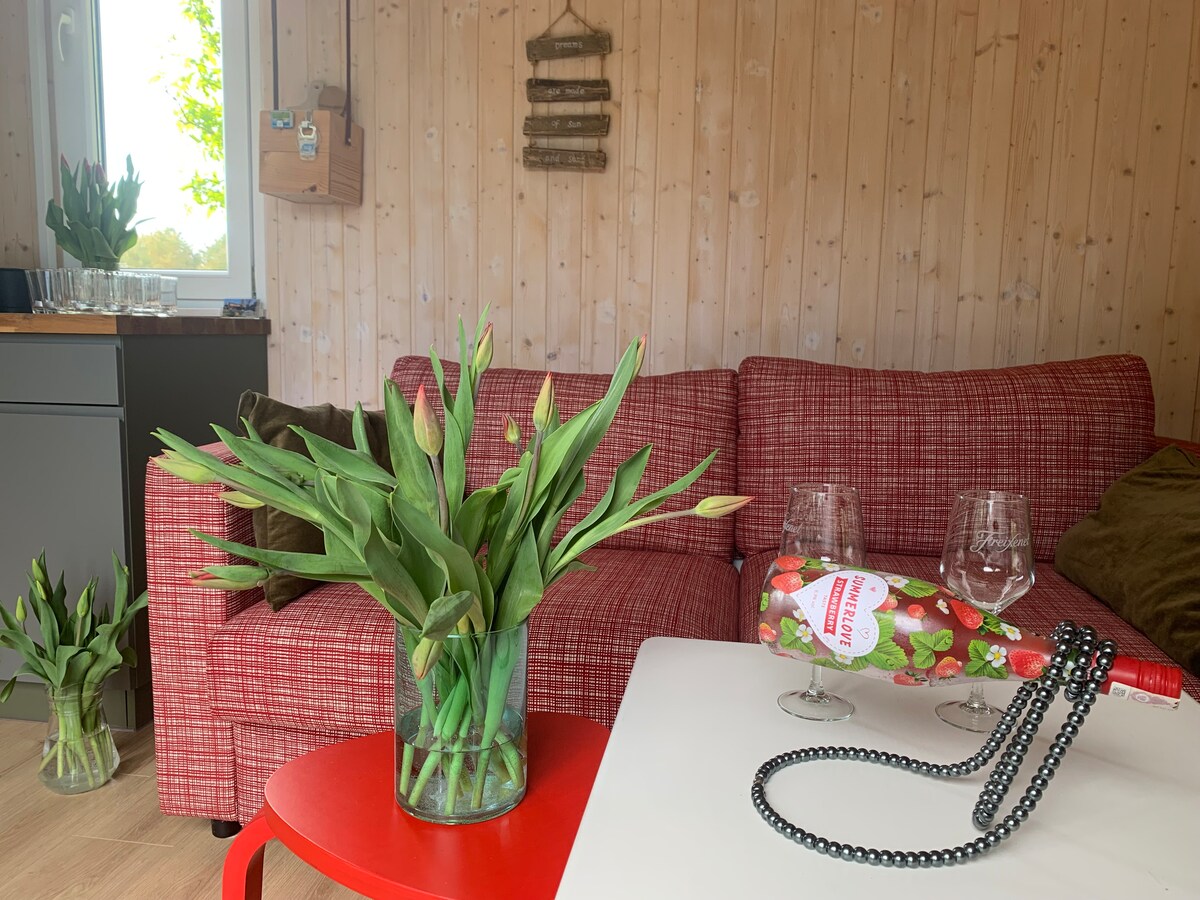 Üdvözlünk! Meghívunk vendégházunkba egy bájos és csendes környéken, amely tökéletes a pihenéshez és a kikapcsolódáshoz. A kisház 4 fős, fürdőszobával és zuhanyzóval. Teljesen felszerelt konyha és kandalló a hűvösebb estékhez. Van egy forró banya pezsgőfürdővel, egy terület tóval és grillezési lehetőséggel, valamint egy tűzrakóhellyel. A gyerekek számára hinta, trambulin, homokozó és játékok állnak rendelkezésre. Elkerített terület, zárt. Parkolás a telken a kisház közelében.