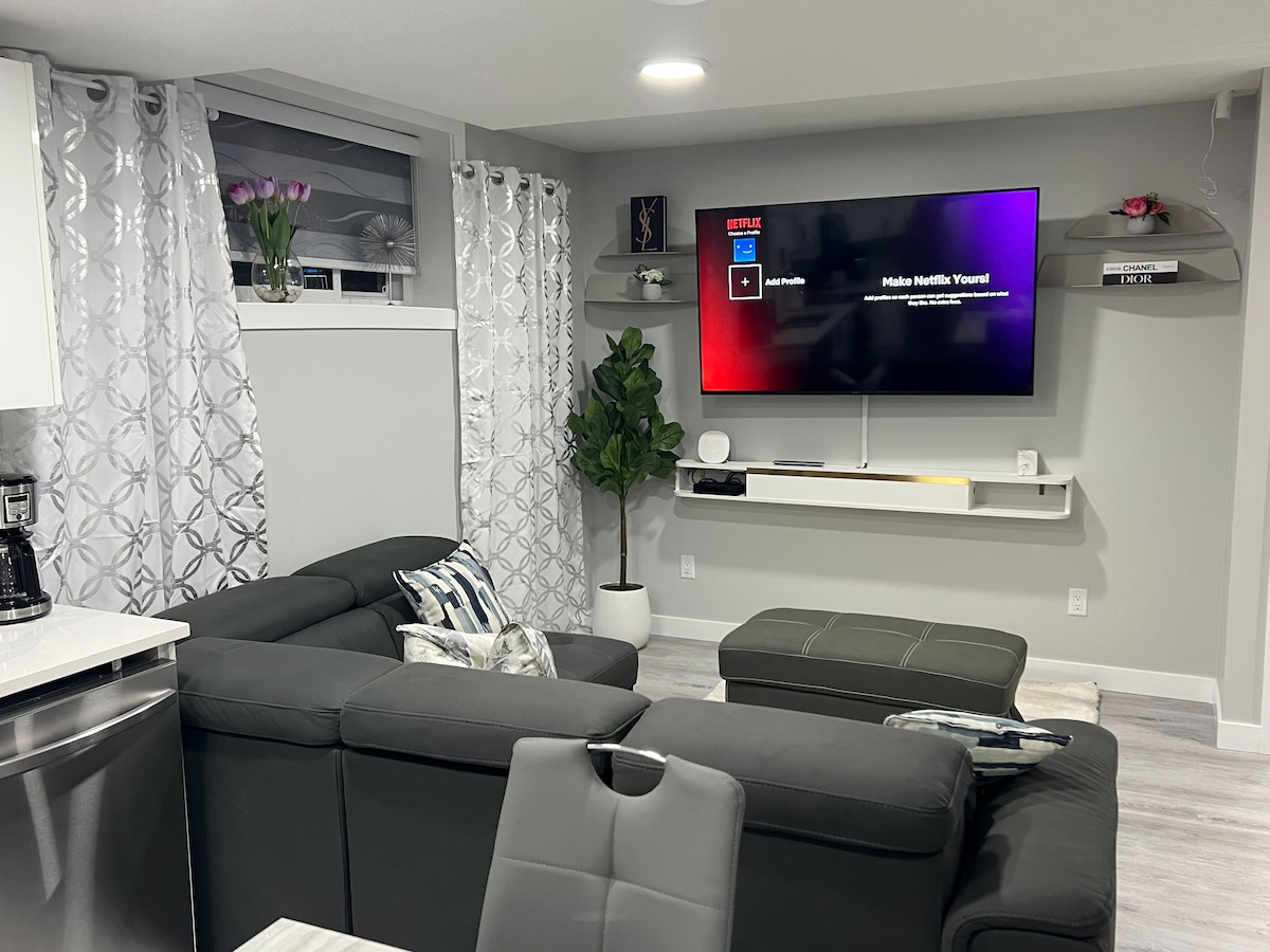 Tiszta alagsori lakosztály egy nyugodt környéken Edmonton délnyugati oldalán, 15 percnyi autóútra a nemzetközi repülőtértől. A lakosztály saját, intelligens zárral ellátott bejárattal rendelkezik, és Wi-Fi-vel, Netflix-szel, mosodával és termosztáttal van felszerelve. A konyha jól felszerelt funkcionális készülékekkel, például hűtőszekrénnyel, elektromos tűzhellyel, mikrohullámú sütővel, vízforralóval, kenyérpirítóval és kávéfőzővel.