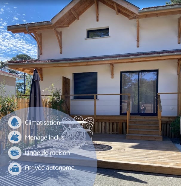 Entre bassin et océan, emplacement idéal pour ce charmant studio de 20m2, intégré dans une maison familiale. Environnement calme, tout proche de la forêt, des pistes cyclables et des commerces ! Parking, terrasse privative avec chiliennes, lit confortable, cuisine équipée (réfrigérateur, plaques, cafetière, bouilloire, grille-pain), salle de bain. Linge de maison fourni. Nombreuses activités sportives à proximité (surf, vélo, paddle, tennis, bateau ...) et balades.
