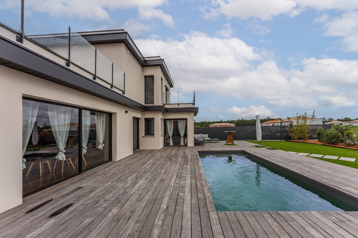 Építész által tervezett villa 10 ággyal, légkondicionált. Kevesebb mint 5 perc sétára található a helyi üzletektől és az Arcachon-medence strandjaitól (Grand Piquey falu). autóval 5 perc alatt el lehet jutni az óceáni strandokhoz (15 percre Cap Ferret központjától) Fűtött, 15 méteres fűtött úszómedence május 15. és szeptember 15. között az időjárástól és az időjárási viszonyoktól függően (ezen időszak előtt és után téliesített és/vagy fedett) egy igazi zöld gubó