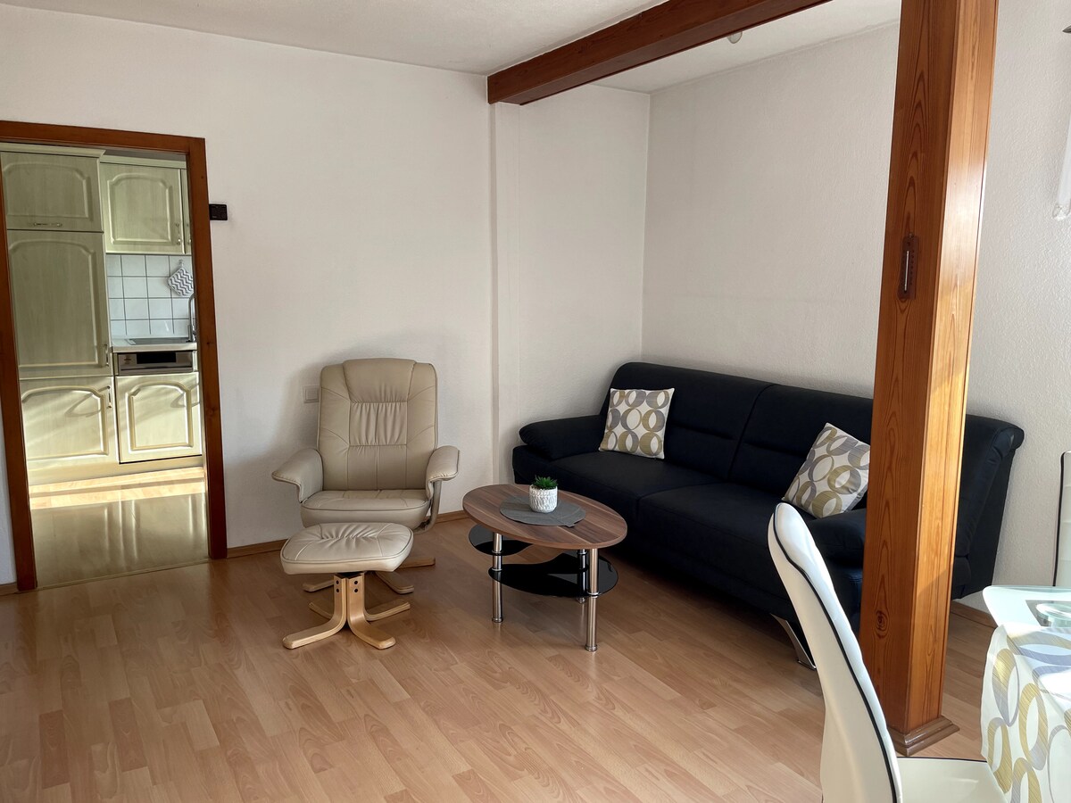 Körülbelül 40m2, tiszta és világos apartman konyhasarokkal, nappalival és külön hálószobával. Nagyon szép, világos fürdőszoba zuhanyzóval és WC-vel és integrált 2 fős szauna (Klafs). Ideális a hideg évszakban tett séták utáni pihenéshez. Az apartman a 3. emeleten található, és saját külön bejárattal rendelkezik. A főbérlők ugyanabban a házban élnek. A lakás rendelkezik egy zárt parkoló. A kerékpárok biztonságosan parkolhatnak az udvaron. Divatos környék.