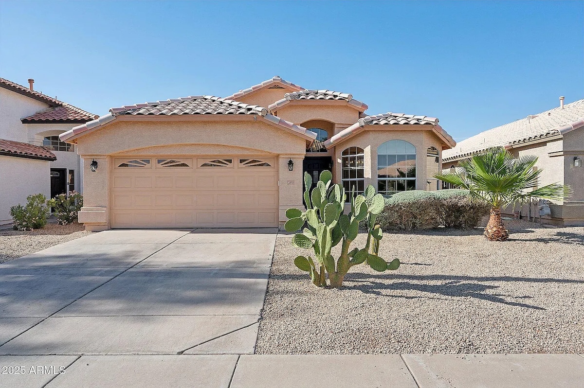 Discover your ideal Mesa retreat in this cozy 3-bedroom, 2-bathroom home situated in a tranquil and conveniently-located neighborhood. This cozy escape offers the perfect foundation for an exceptional Arizona vacation experience. Lounge by the private pool, cozy up by the fireplace, or get work done in the dedicated workspace. Sleeps 7 with 3 comfy beds. Perfect for families or remote workers alike! Your dream Arizona adventure starts here!