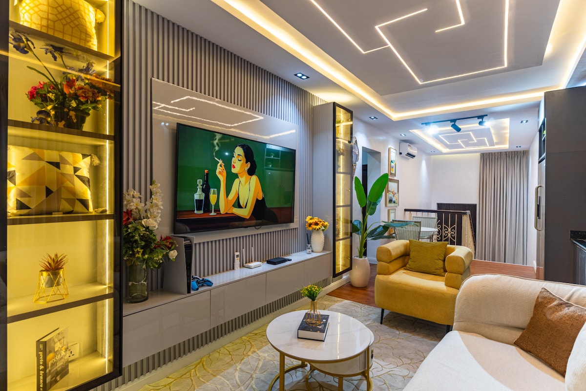 Élvezd a luxust ebben a tágas, stílusos, 2 hálószobás lakásban, amely medencével, edzőteremmel, Starlink Wi-Fi-vel, PS5-tel és gyönyörűen megtervezett belső terekkel rendelkezik. Az épületben éjjel-nappal biztosított az áramellátás, és van egy helyszíni konyha, ahol frissen elkészített ételeket rendelhetsz, amelyeket közvetlenül az ajtódhoz szállítanak. Tökéletes pároknak, családoknak, üzleti utazóknak vagy baráti csoportoknak, akik kényelmet és kifinomultságot keresnek Lekki Phase 1 szívében.