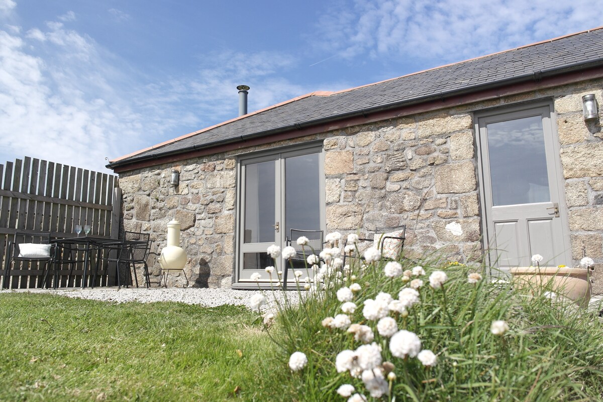 Escape to Tilly's House-Your charming escape in tranquil Cornish countryside. Sip morning coffee on your patio listening to birdsong, soak up far reaching views as you stroll around our 2 acre meadow & unwind under the stars. Relaxation awaits as you enjoy a spacious king bedroom, bright living area & fully equipped kitchen. Minutes from North & South coast beaches, St Michael’s Mount, St Ives & National Trust gardens-The perfect spot for couples to relax, recharge & enjoy time together.