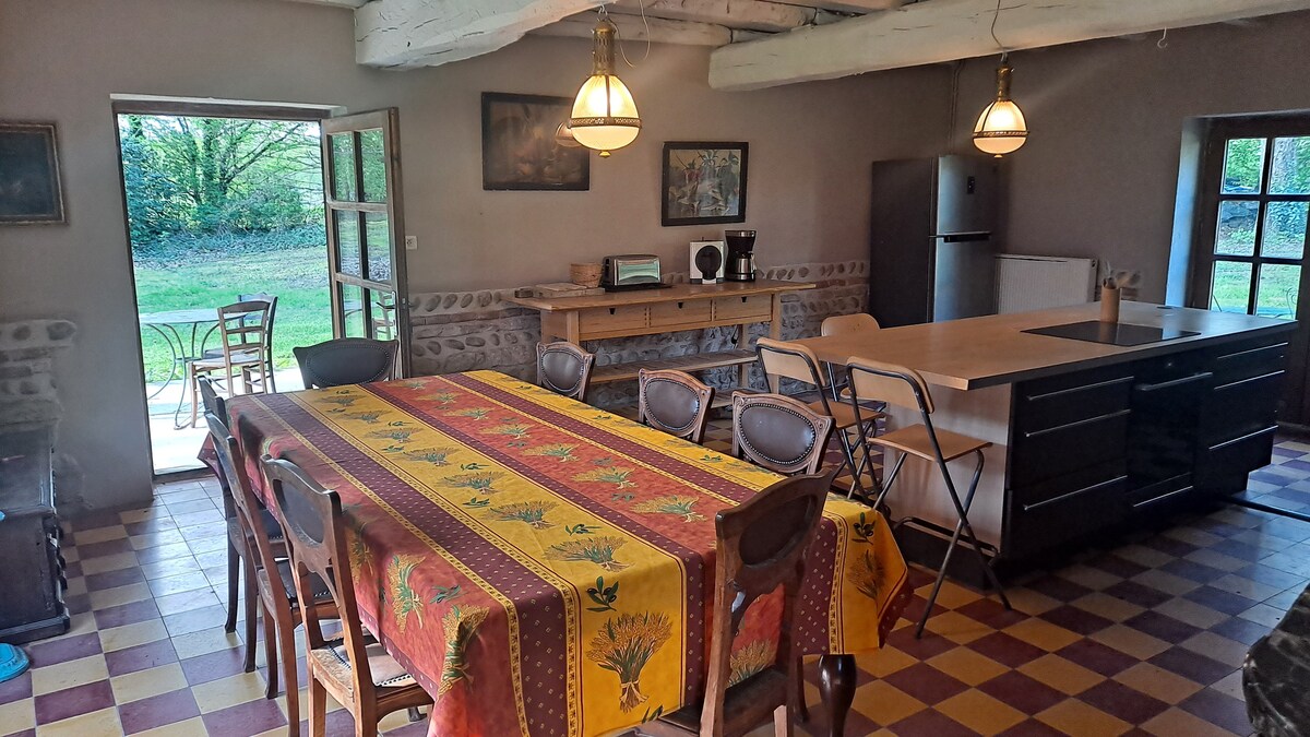 Nous vous proposons ici une véritable immersion dans la nature. Gîte spacieux pour 8 personnes. Idéal pour des séjours en famille. Notre gîte vous propose de nombreuses activités (pêche sur notre étang, pétanque, piscine, jacuzzi, centre de bien être massages et soins esthétiques,... ski nautique a 10 min a pied etc...) A l'intérieur un équipement de qualité, une décoration soignée chinée au fil de temps, de nombreux jeux de sociétés, un grand écran, un pack bébé sur demande etc...