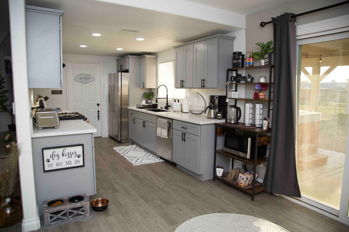 Fedezze fel a Pipe 's Perch-et, egy nemrég felújított víkendházat 5 privát hektáron a Pipes Canyonban, mindössze 20 percre a Joshua Tree Nemzeti Parktól és 15 percre a Pappy & Harriet's-től. Könnyen megközelíthető, és lenyűgöző kilátást nyújt a zord kanyonokra és csúcsokra. Bent élvezd a modern luxust sárgaréz szerelvényekkel, kvarc munkalapokkal és új készülékekkel. Nagy ablakok keretezik a sivatag szépségét. Lazíts a „California king” méretű ágyban és a jéghideg légkondicionálóban a tökéletes pihenéshez.