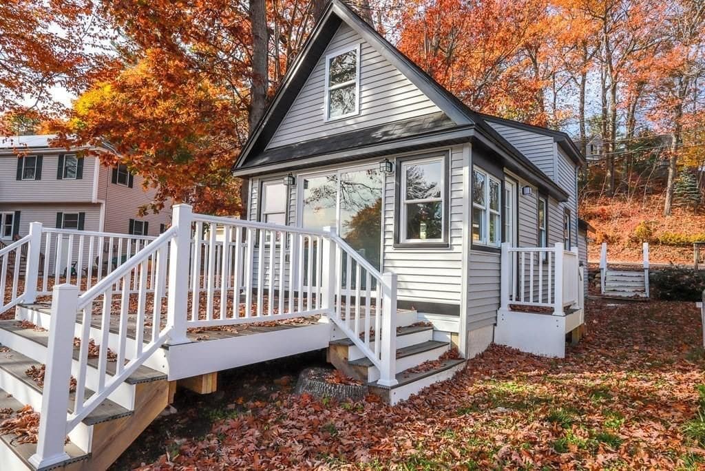 A charming lake house with a magnificent view of a ski mountain — Wachusett Ski Resort (voted #1 in MA). Newly-renovated, 650 square foot cabin with a wall unit AC, fire pit, grill, smart TVs, kayaks, paddle board, and all the amenities you’ll need. (FYI: We also own another lakefront Airbnb right down the street that accommodates 10 guests. Ask for link.) *A brand new retaining wall and dock will be installed May 2024. This will extend and even out the lawn for nights around the firepit!