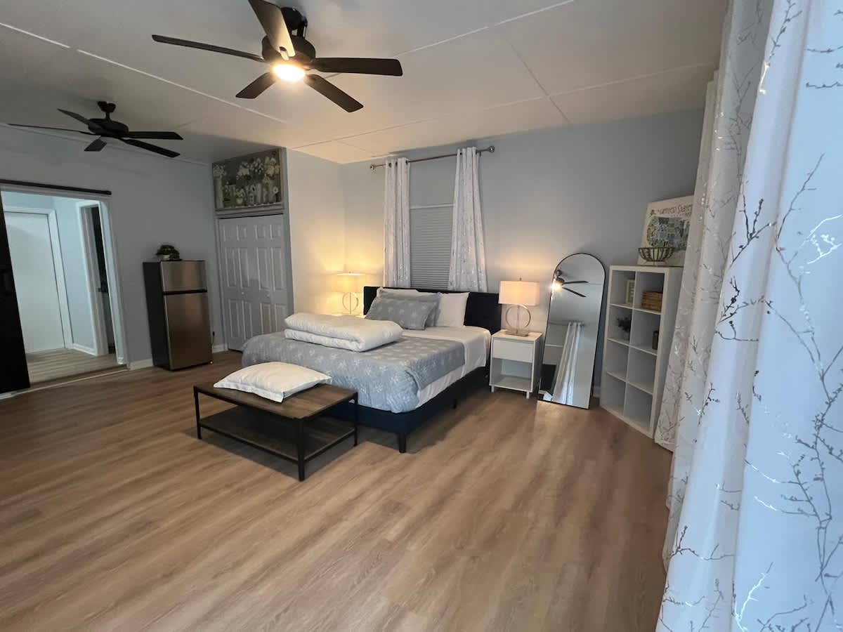 Industrial Modern Studio in the heart of Tallahassee, Walking distance to Doak Campbell Stadium, Madison social, and all college town restaurants and nightlife. This is the perfect stay for game days or to visit FSU which is a 5 minute walk to campus. Bring your bicycles and your a 10 minute bike ride to the Railroad square arts district, Cascades Park and all government buildings in downtown. You could not ask for a better location in Tallahassee Florida. Extremely comfortable king bed.