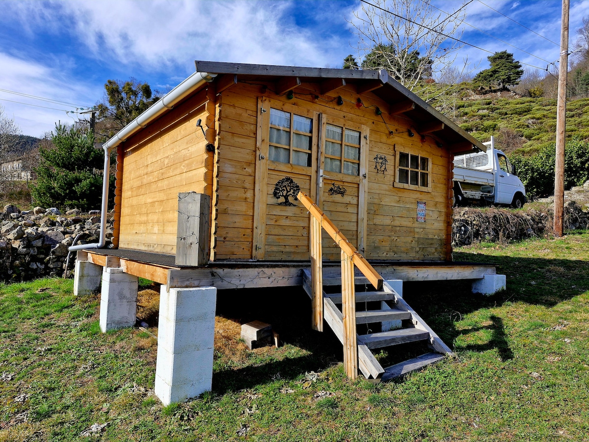 Le Chanabier, small log house ( about 50 m2) in the heart of the PNR (the Monts d 'Ardèche), quiet in a small hamlet Élvezheted a közeli folyót és a parkosított víztömeget felügyelt úszással és harapnivalókkal. Biztonságos hely, amely ideális a gyerekeknek. Számos túraútvonal található a közelben. La source de la Loire 45 percre, Chauvet-barlang 1,5 órányira található.