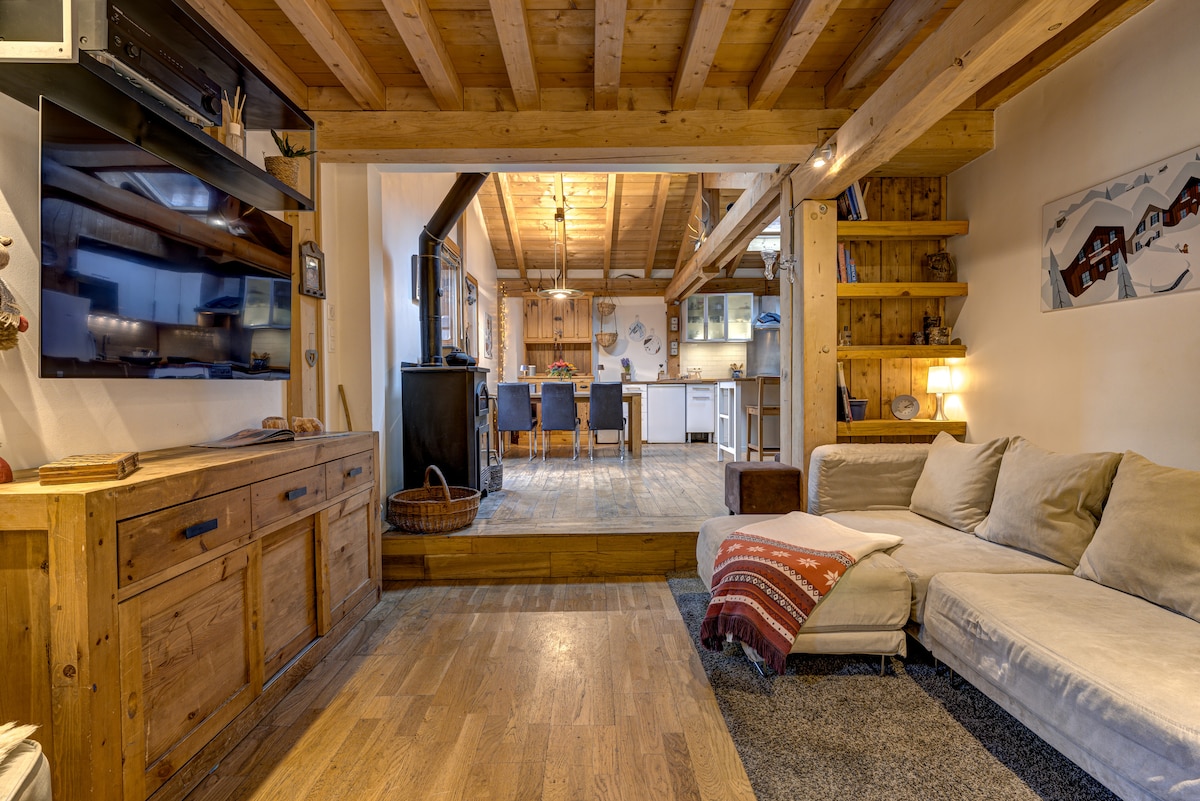 A Chamonix kapujában található La Ferme du Bourgeat 3 luxuskunyhóból áll. Florent földszinti istállója nagyon tágas, hangulatos, modern és meleg. Üzletek és síbussz 150 méterre. Privát szauna. 3 hálószoba, 1 konyha, 1 nappali/étkező, 1 fürdőszoba, 2 WC, 1 terasz. Ágynemű és törölköző biztosított, Wi-Fi, Netflix, raclette/stone és fondue készítő. Teljesen felszerelt konyha [sütő, mosogatógép, mikrohullámú sütő, kenyérpirító, kávéfőző, vízforraló, amerikai hűtőszekrény.