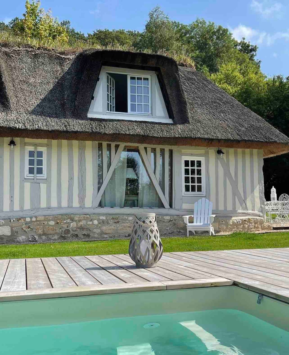 A két Honfleur-i zsúpfedeles ház medencével és gyógyfürdővel