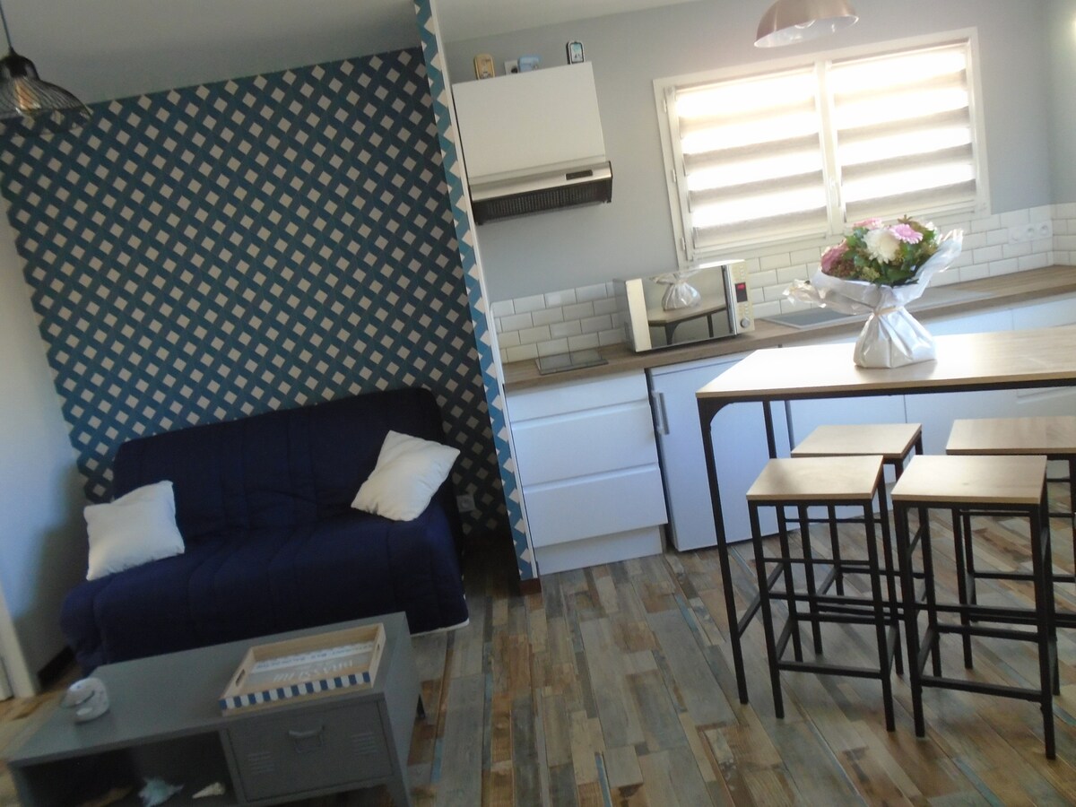 Mindennek a központjában (városközpont, üzletek, sétálóutcák, fedett piac, éttermek, turistalátványosságok, kikötők, csatorna és ... Les Sables d 'olonne nagy strandja), stúdiónk nagyon kényelmes ágyneművel van berendezve a strandfelszerelés a rendelkezésedre áll, valamint 2 kerékpár áll a rendelkezésedre Törülközőket, ágyneműt, konyharuhát, wifit és első fogyasztási készleteket biztosítunk Lehetséges számlák visszatérítendő áfával