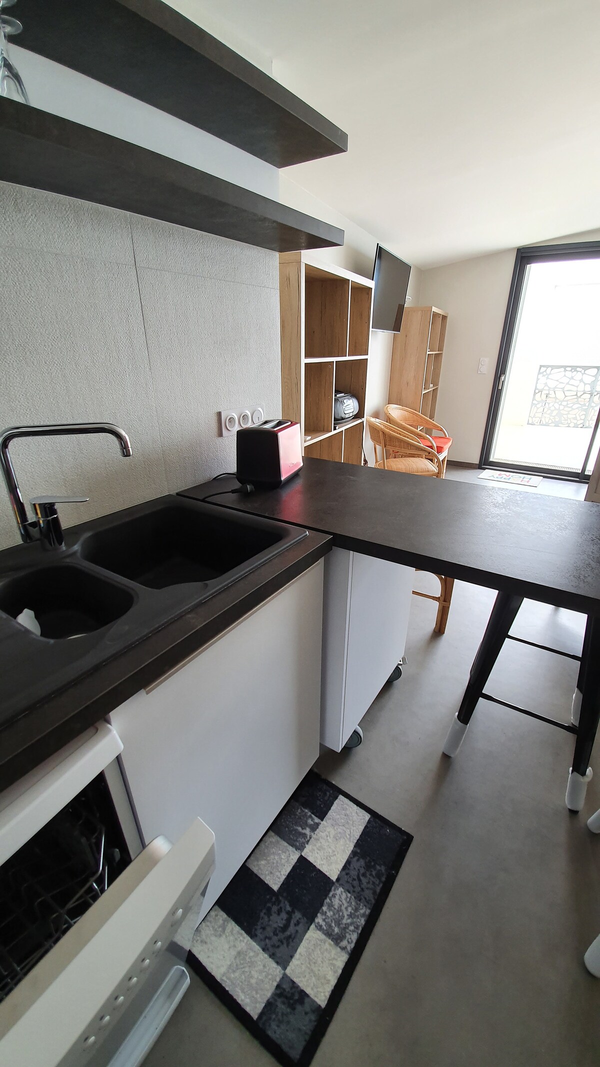 Simplifiez-vous la vie dans ce logement paisible et central. Sur 22 m2 une pièce avec un lit 160x200 (matelas ferme), un petit canapé, une armoire, un bureau, télévision, et un coin cuisine (induction, micro-onde, frigo, rangement ...) et une salle d'eau (douche lavabo wc, sèche-cheveux ...). Il n'y a pas de box wifi, mais la 4G fonctionne très bien. Dans le garage, où se fait l'accès via un escalier, une machine à laver est à disposition. Possibilité de laisser un 2 roues. Proche centre ville