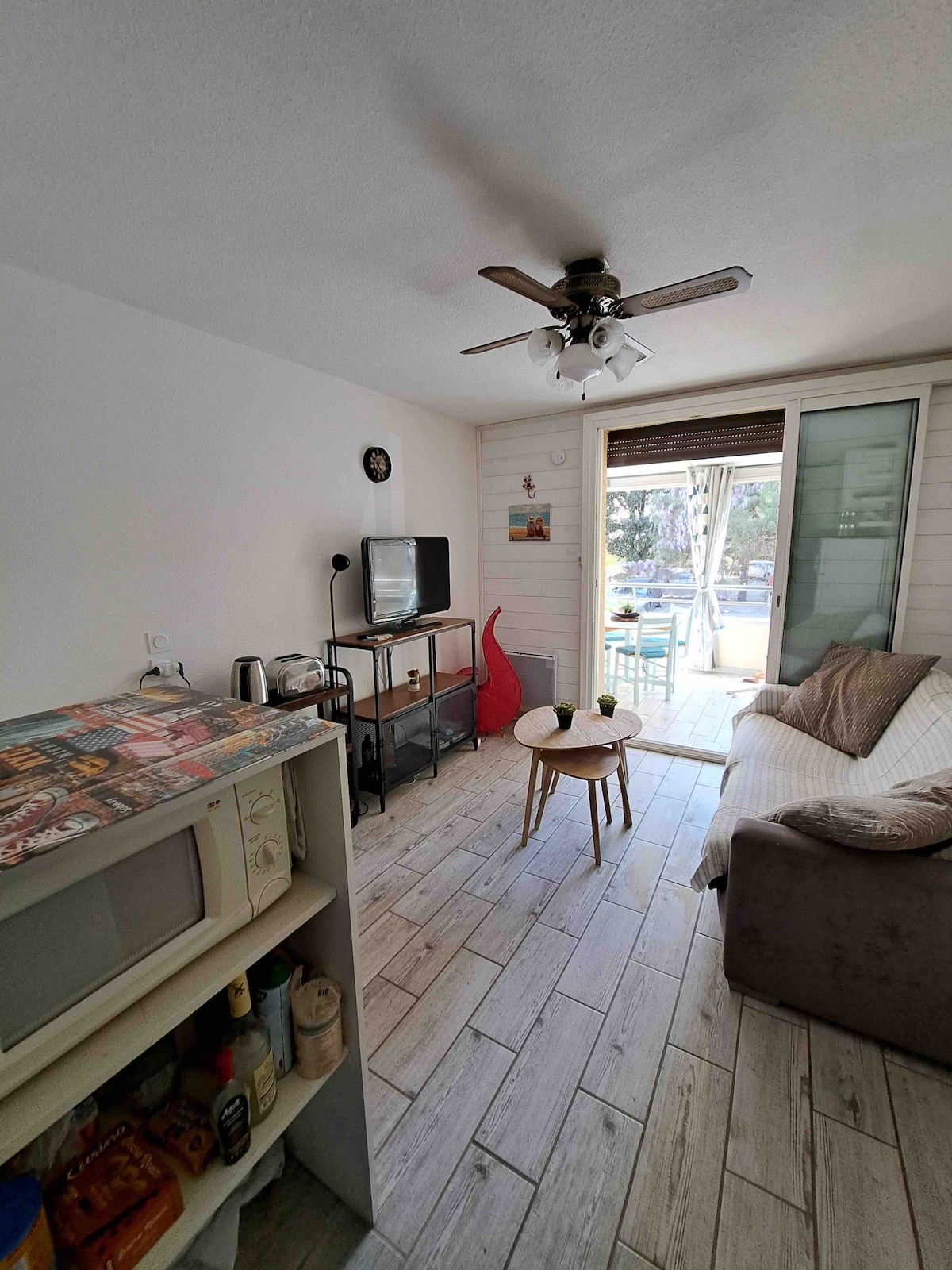 Üdvözlünk délen! A lakás egy független bejáratból és egy teljesen felszerelt konyhával rendelkező nappaliból áll. Kétszemélyes kanapéágy, valamint egy hálószoba franciaággyal. Fürdőszoba zuhanyzóval, mosdóval és külön WC-vel. Mosógép és megfordítható légkondicionálás. Privát kert. Grillező áll rendelkezésedre. A lakás elhelyezkedése gyors hozzáférést biztosít a strandhoz, autóval mindössze 4 percre vagy gyalog 20 percre a Les Sablettes-től.