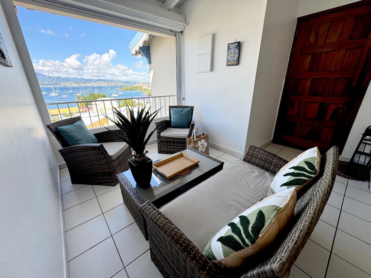 Lépj be egy fényes otthonba, és élvezd a lélegzetelállító kilátást a Fort-de-France öbölre! Található 5 percre a sziget főúttól, ez a lakás lesz az ideális kiindulópont a munka- vagy szabadidős tartózkodás, vagy a kettő kombinációja. A távoli munkát szem előtt tartva kialakított íróasztal és a nagy sebességű internet lehetővé teszi a hatékony munkavégzést. A nyugodt alváshoz a légkondicionált kényelmes hálószoba éjjel-nappal várja Önt.