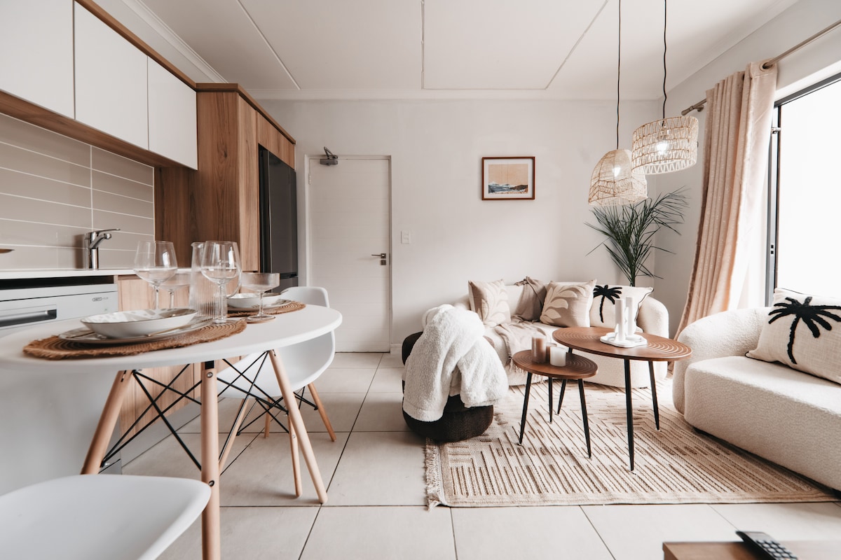 Enjoy a secure and stylish stay in this modern two-bedroom apartment, close to O.R. Tambo Airport. Benefit from 24-hour on-site security guards and convenient 24-hour check-in, ultra-fast Wi-Fi, air conditioning, and UPS-backed power ensuring uninterrupted connectivity and charging during loadshedding. Prepare meals effortlessly with a gas stove and enjoy the comfort of solar-heated showers. Perfect for business travelers and families seeking comfort, security, and peace of mind.