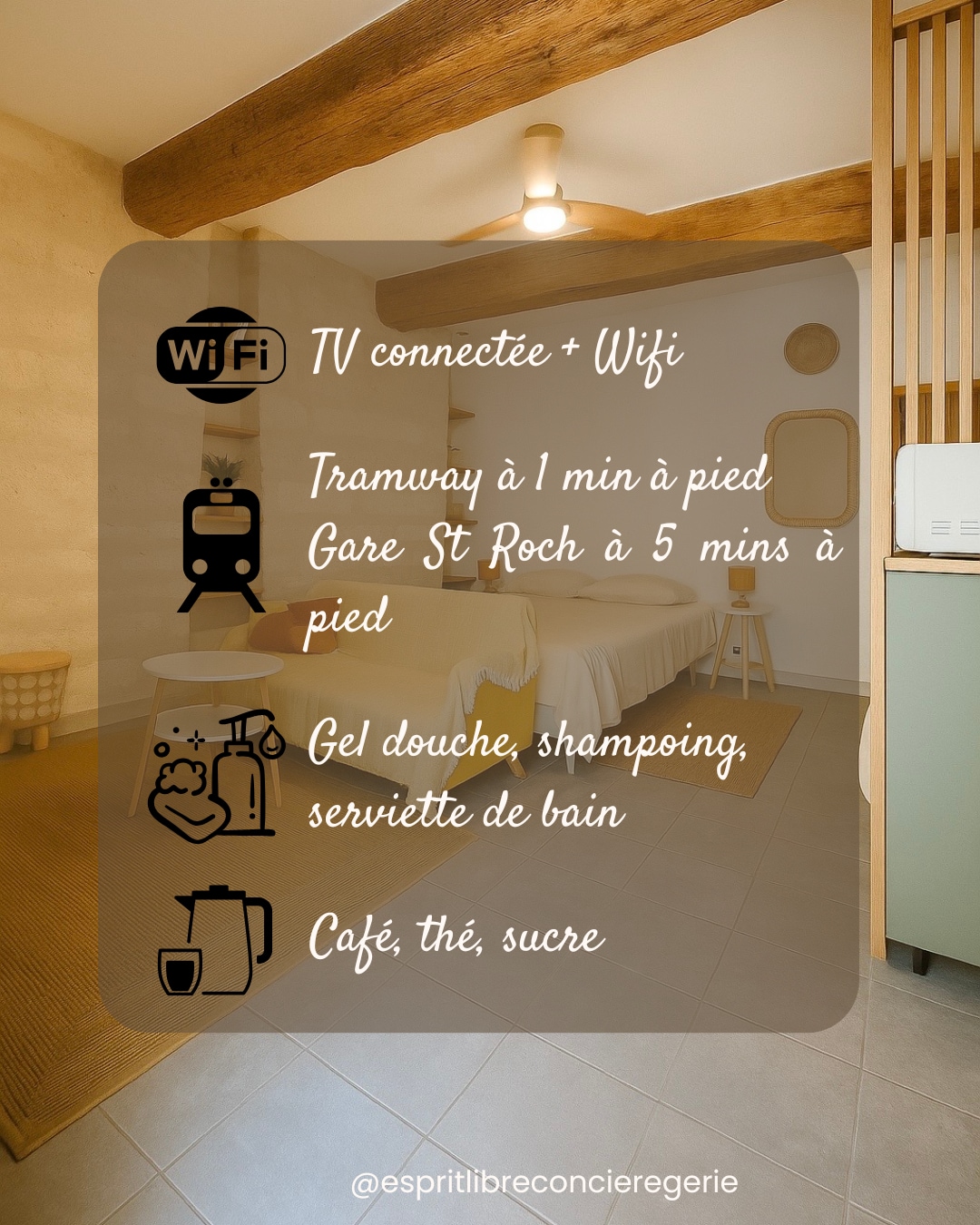 Gyönyörű tágas és világos apartman terasszal, légkondicionálóval, ingyenes parkolással és lélegzetelállító kilátással a tengertől a Pic Saint Loup-ig. Ideális helyen, a városközpontban, rövid sétára a történelmi központ Gare Saint Roch-tól, valamint 4 villamosvonal megállójától. Egy új épület kilencedik emeletén élvezheted a hely nyugalmát, miközben a város szolgáltatásainak és szórakozási lehetőségeinek közvetlen közelében maradsz.
