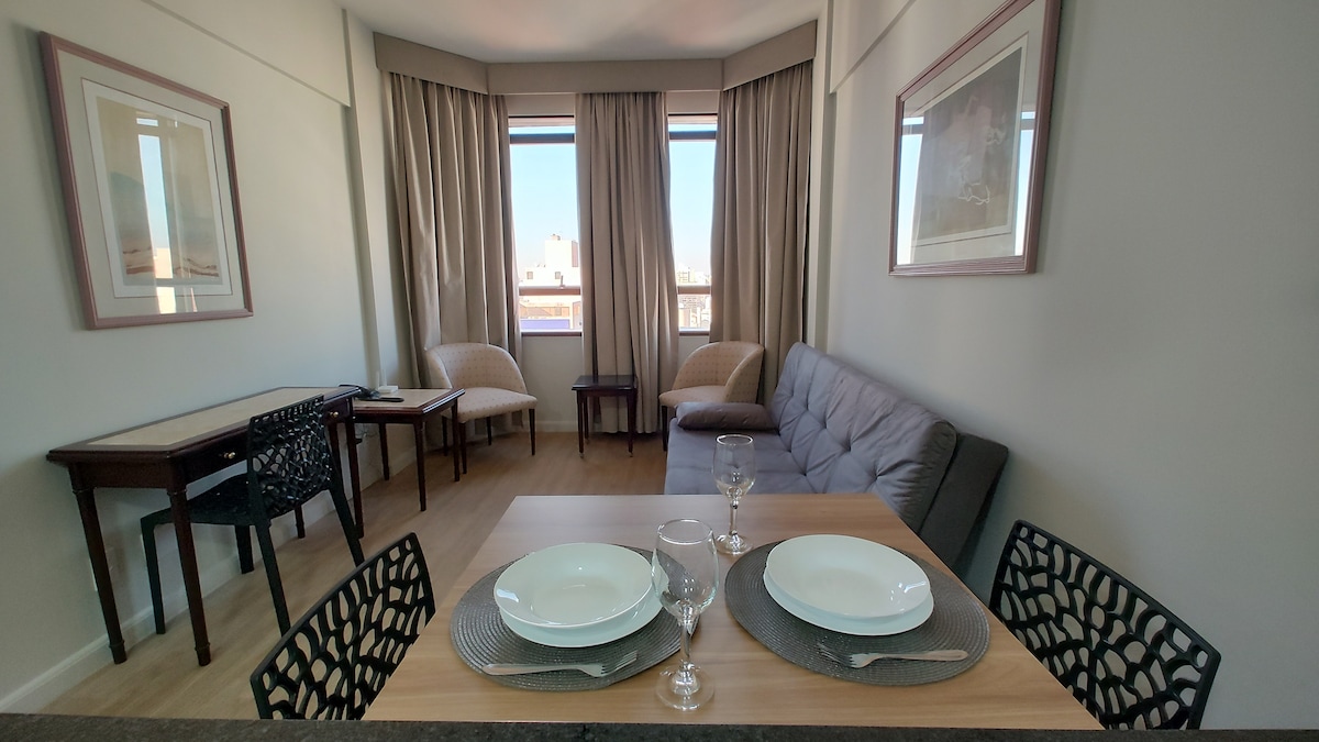 Stúdiólakás a Cambuí negyed közelében: queen méretű ágy, 2 légkondicionáló, 500 Mb!