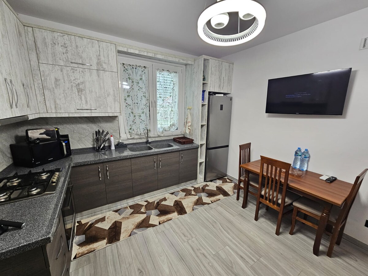 Üdvözlünk az otthonunkban! Az elhelyezkedés a város központjában található. A bejárat 1+1, nagyon jó, újonnan berendezett luxuskörülményekkel . A ház helye lehetőséget ad arra, hogy sétálj a városi parkban, amely a ház közelében található. Minden szupermarket ,gyógyszertár és kávézó nagyon közel van az otthonodhoz . A lakás egy kóddal van ellátva, amelyet a kódon keresztül hazavihetsz. Üdvözlünk!