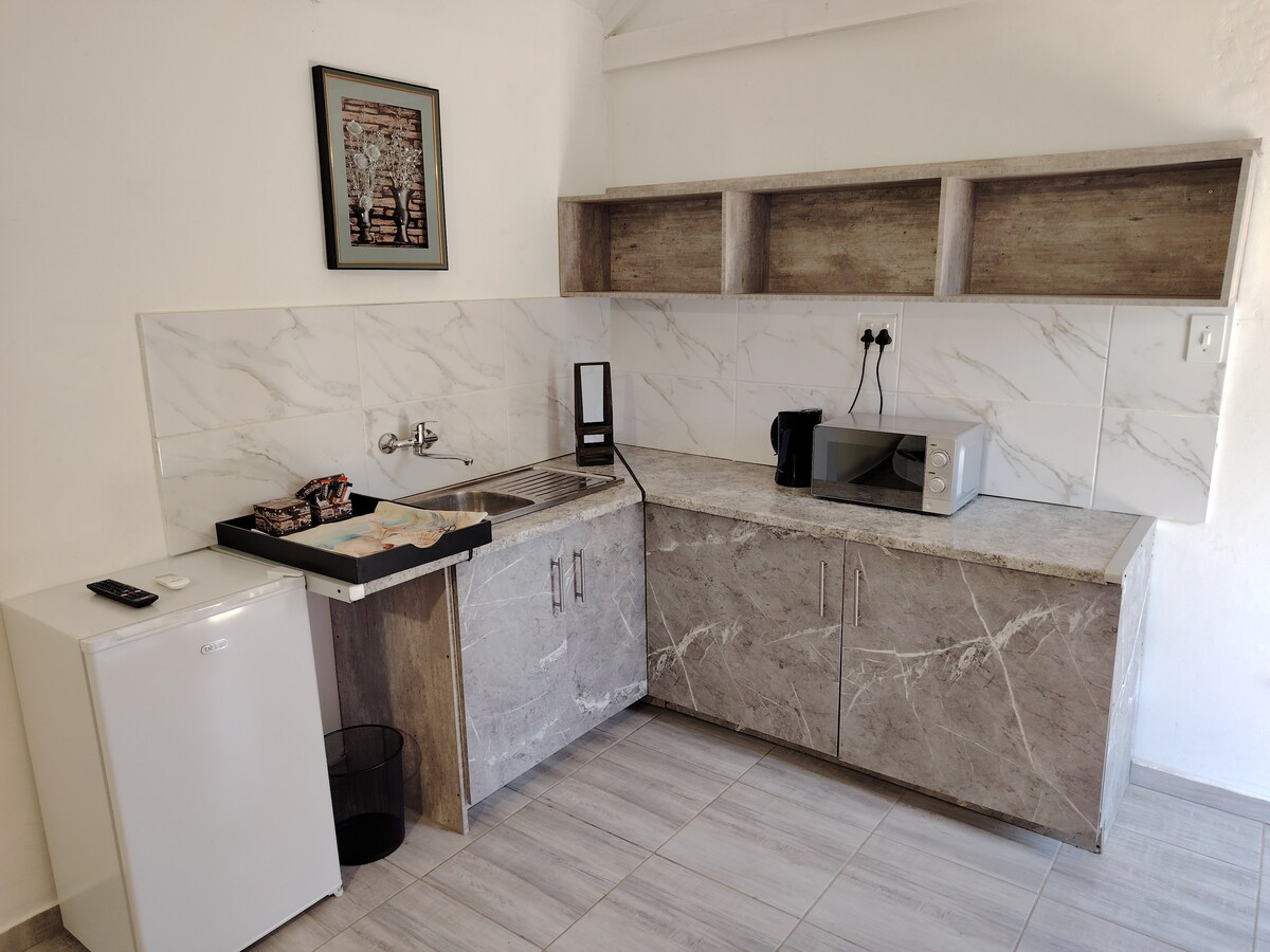 This studio apartment is the perfect setting if you're in town for a business trip, training, party or wedding! Situated in a quiet, safe area in Lichtenburg and close to all the main attractions. Private setting with own garden. Own entrance and safe, covered parking. This is a pet-friendly setting so small four-footed friends are welcome to accompany you during your stay. Guests can easily prepare meals in the apartment or enjoy a more hassle-free dinner at one of the local restaurants.