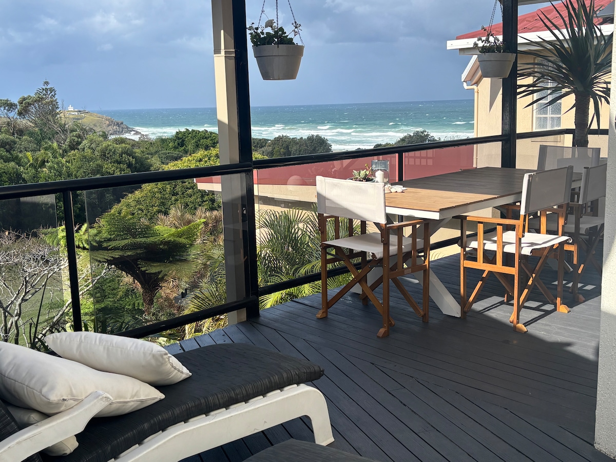 Amazing views of the Pacific Ocean from guest deck through to lounge/ kitchen Direct beach access for surfing,swimming,fishing,bushwalking,cycling trails closeby Relax to the sounds of the ocean from guests downstairs secure and completely private suite with air con ,2 queen bedrooms,kitchen prep area has jug,toaster,3 in 1 microwave airfryer,convection oven,bar fridge etc. Continental breakfast provided . BBQ long stay Large lounge room,bathroom seperate toilet laundry Walk to many Restaurants