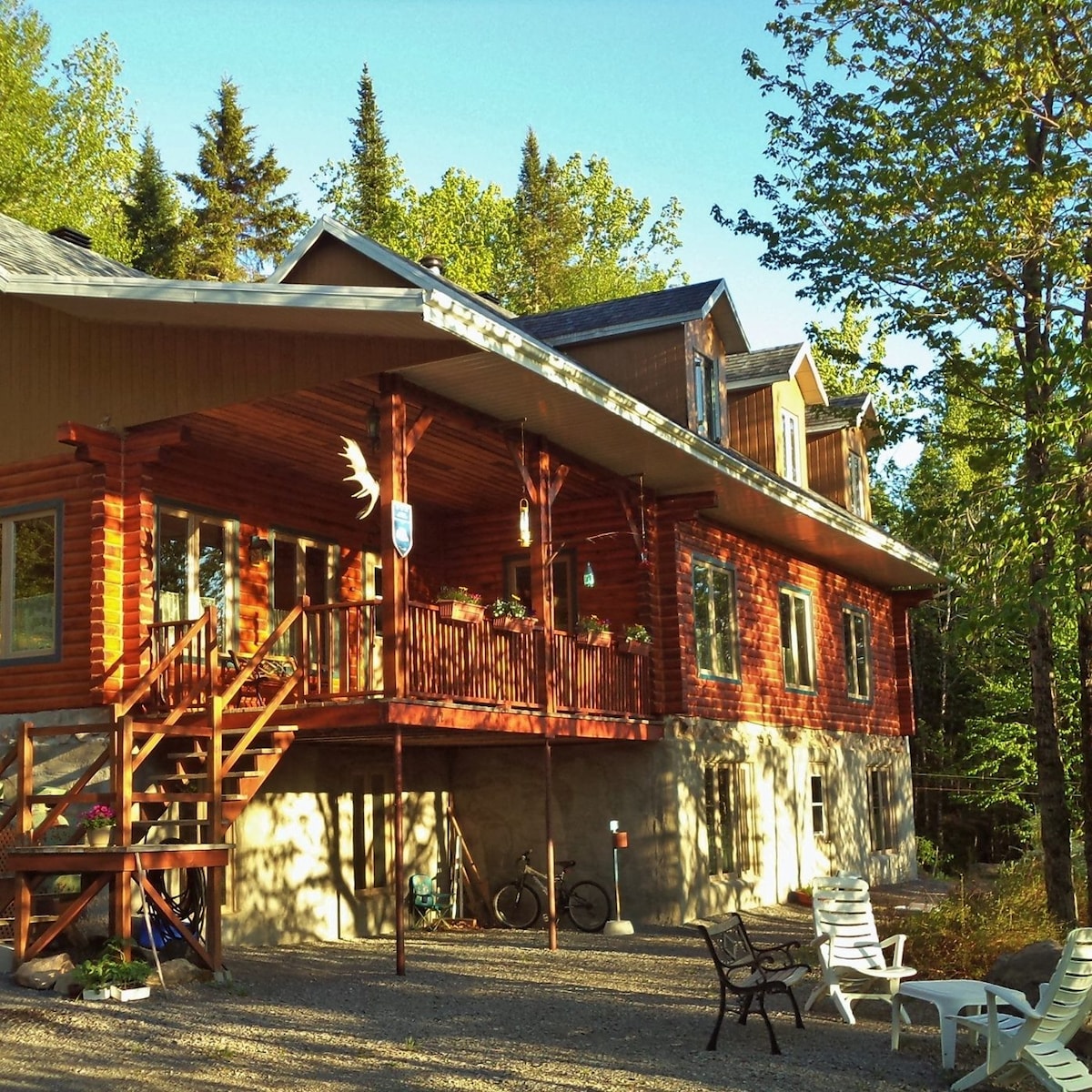 L'Érable' est une des 5 chambres de notre B&B ( # d'établissement CITQ: 210442) Max 3 pers. (1 lit double, 1 lit simple). Située au rez-de-jardin avec entrée indépendante, dans une grande maison en bois rond avec belle vue, à 2 km du parc de la Jacques-Cartier. Accueil dans une ambiance cordiale et conviviale. LE PRIX DE LA CHAMBRE INCLUT LE PETIT DÉJEUNER (sauf pour les bébés qui sont gratuits): Pain, confitures et yogourt faits maison + des œufs et fruits. Les animaux ne sont pas permis.