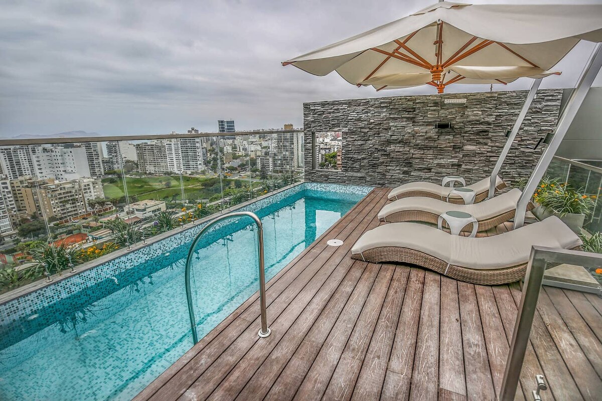 1BR Barranco Pool Sea View Jacuzzi WIFI AC Garage